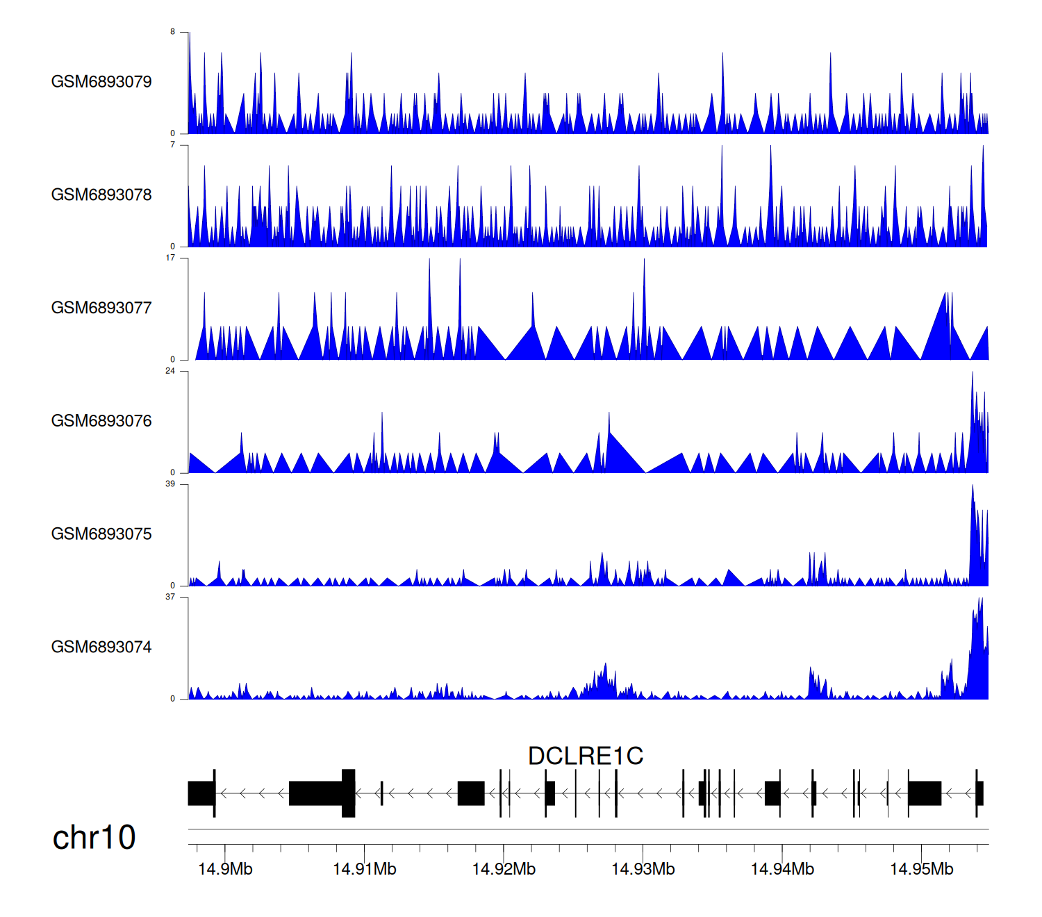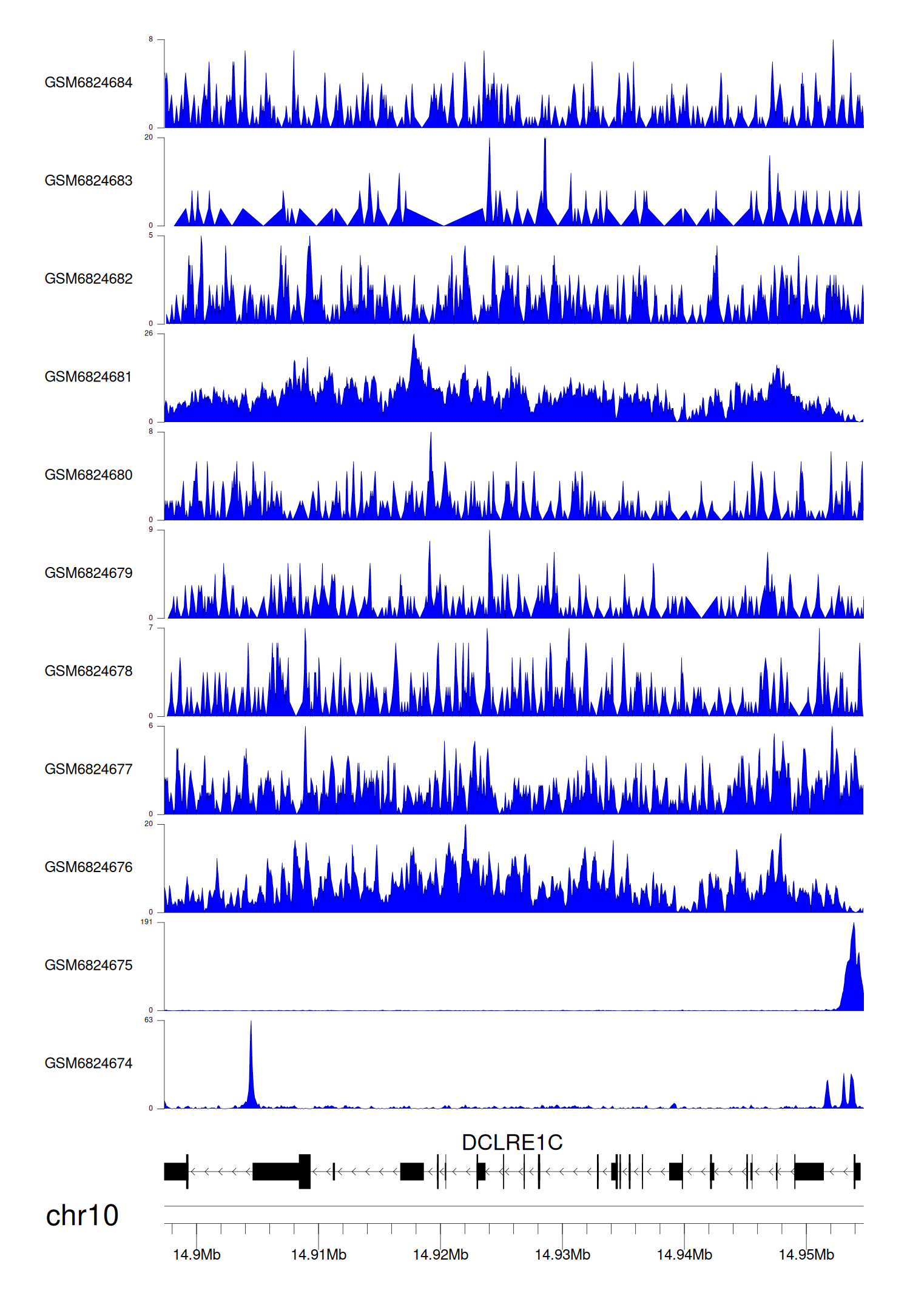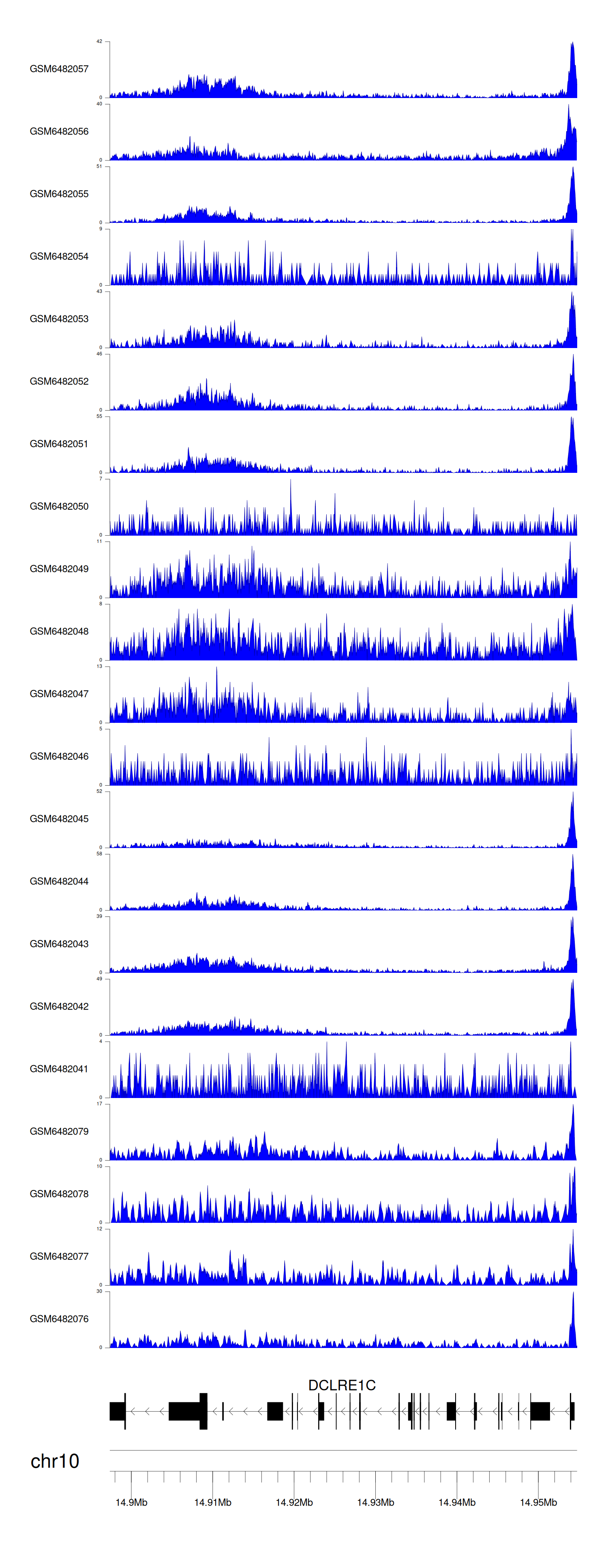 > Dataset: GSE165703 - DCLRE1C peak across samples