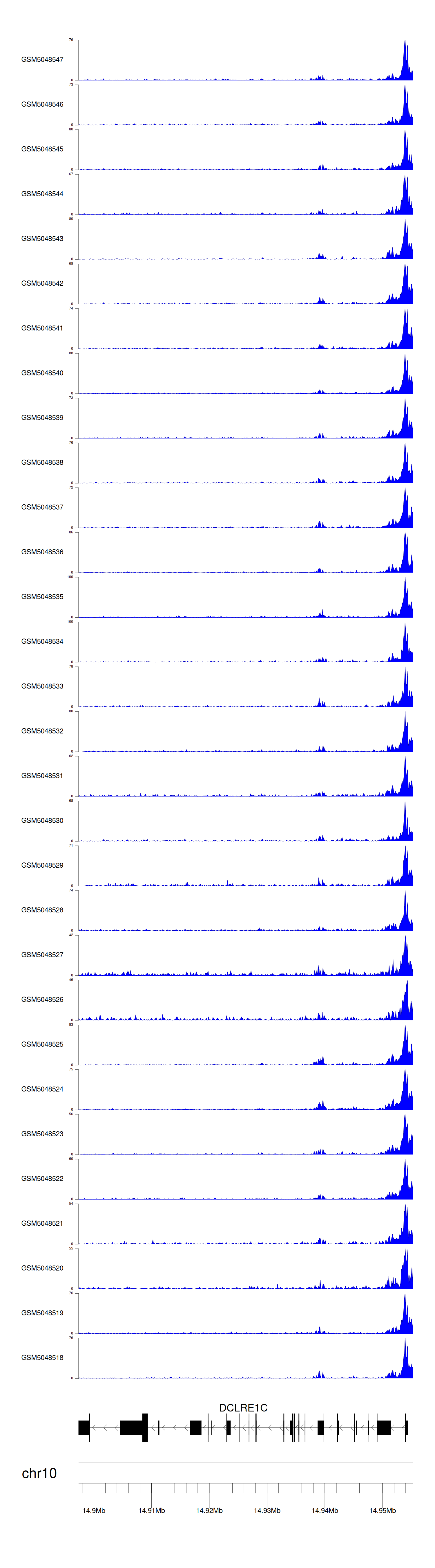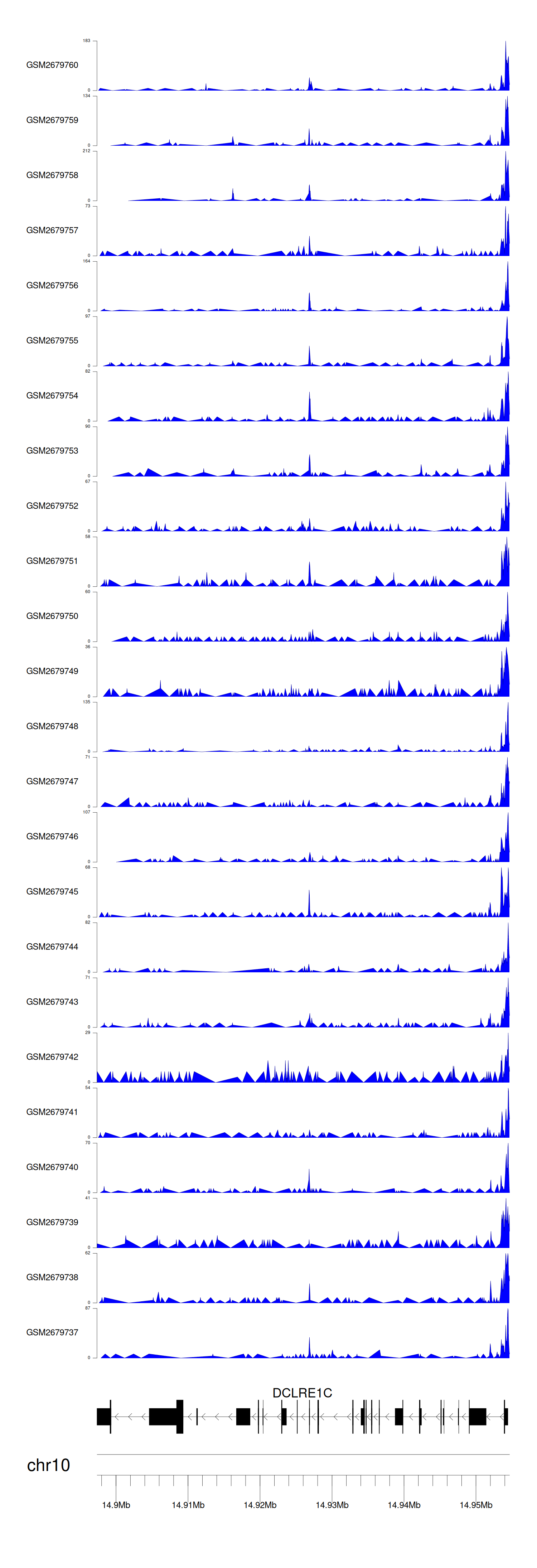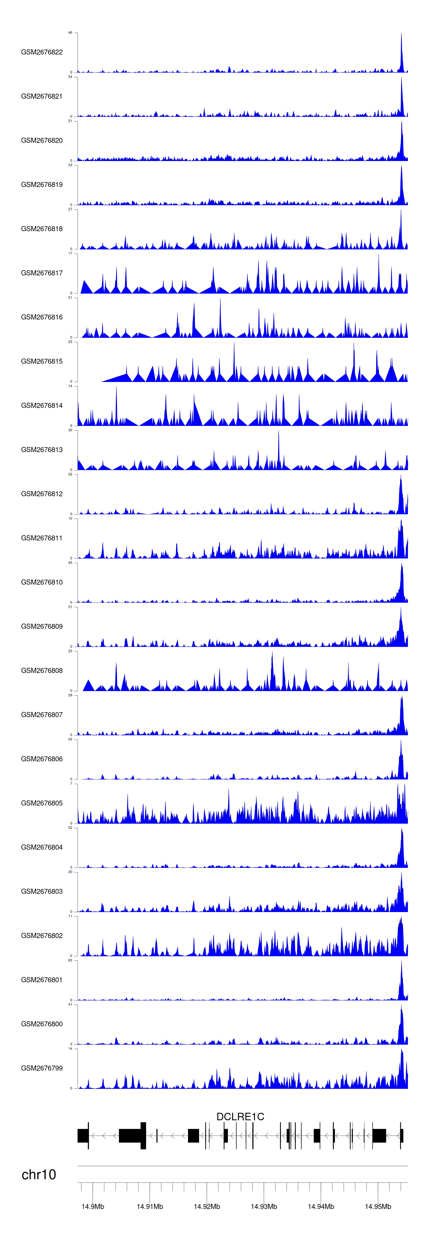 > Dataset: GSE165703 - DCLRE1C peak across samples