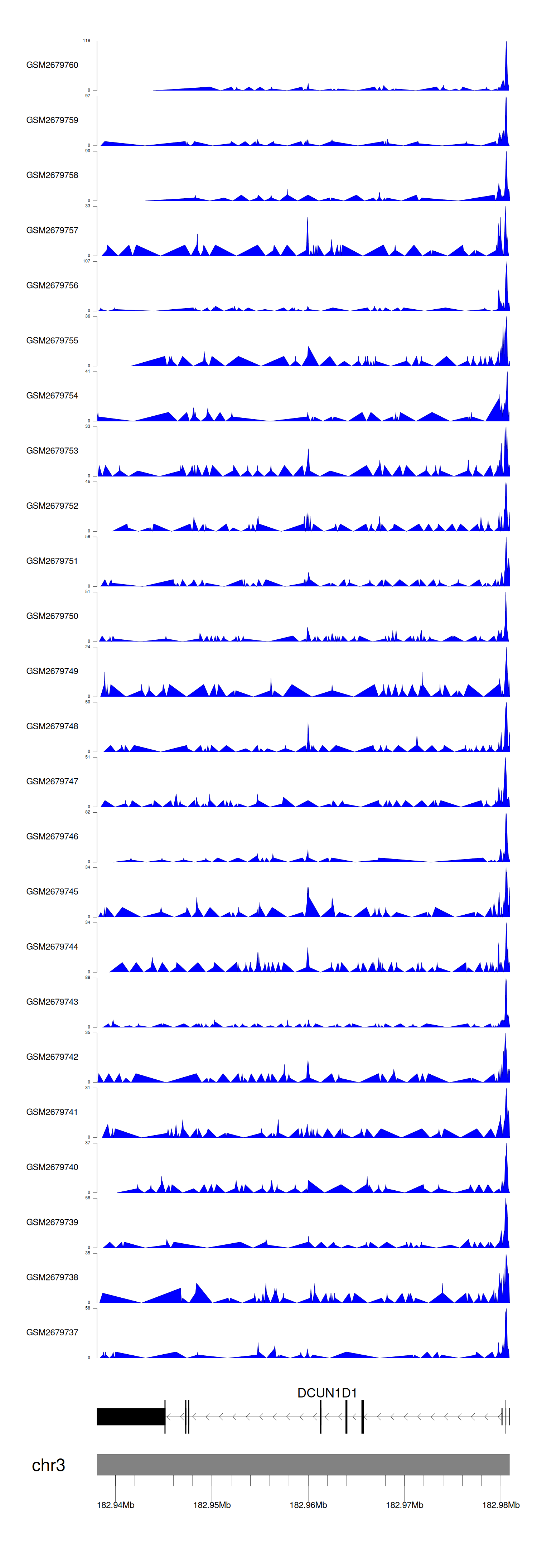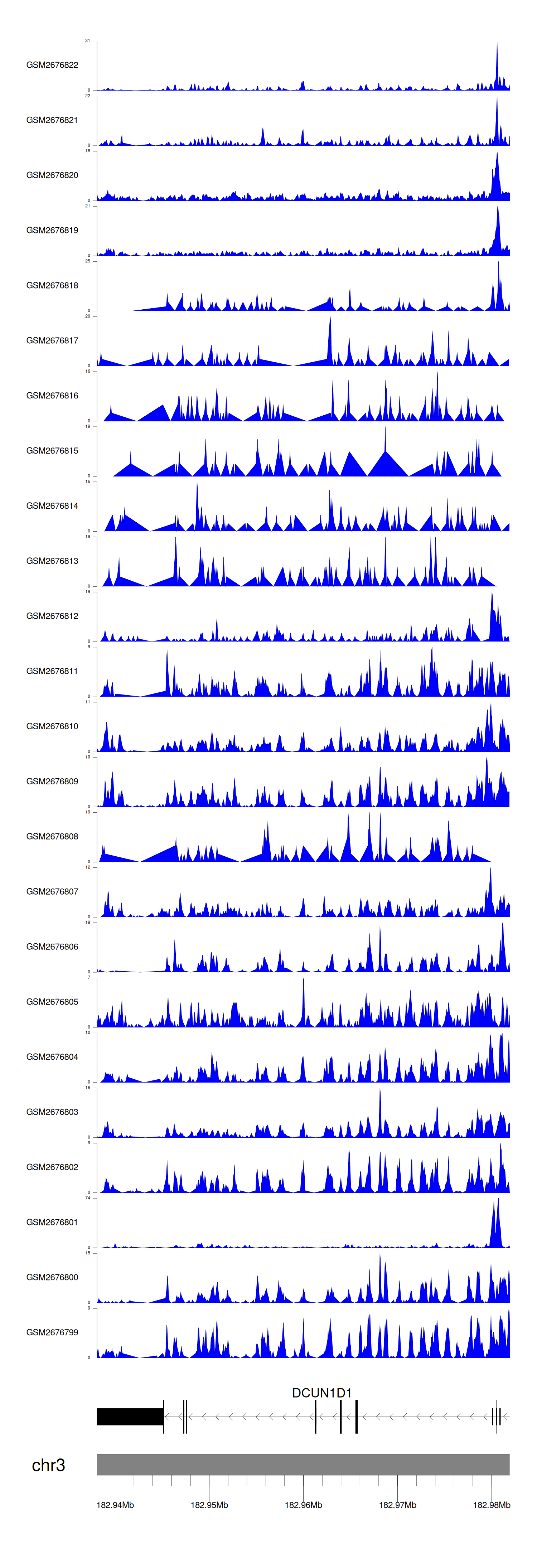 > Dataset: GSE100376 - DCUN1D1 peak across samples