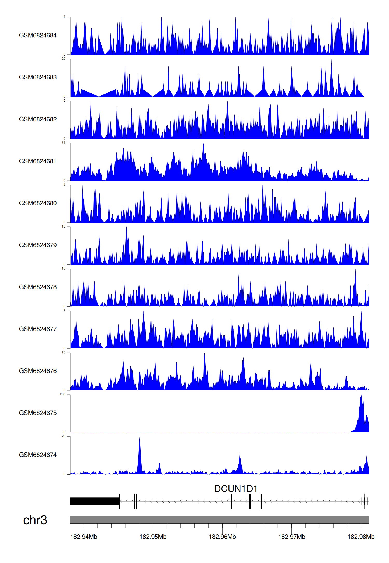 > Dataset: GSE165703 - DCUN1D1 peak across samples
