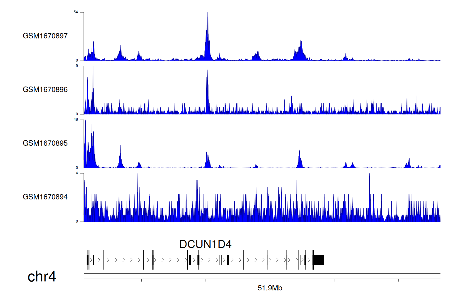 > Dataset: GSE68402 - DCUN1D4 peak across samples
