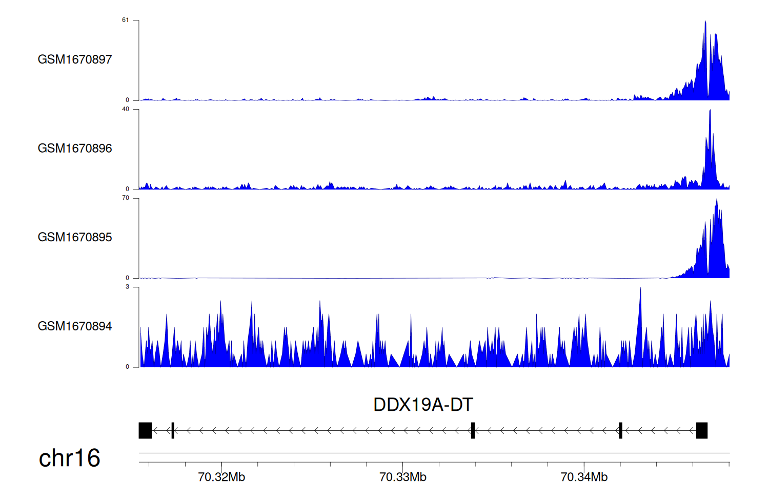 > Dataset: GSE68402 - DDX19A-DT peak across samples