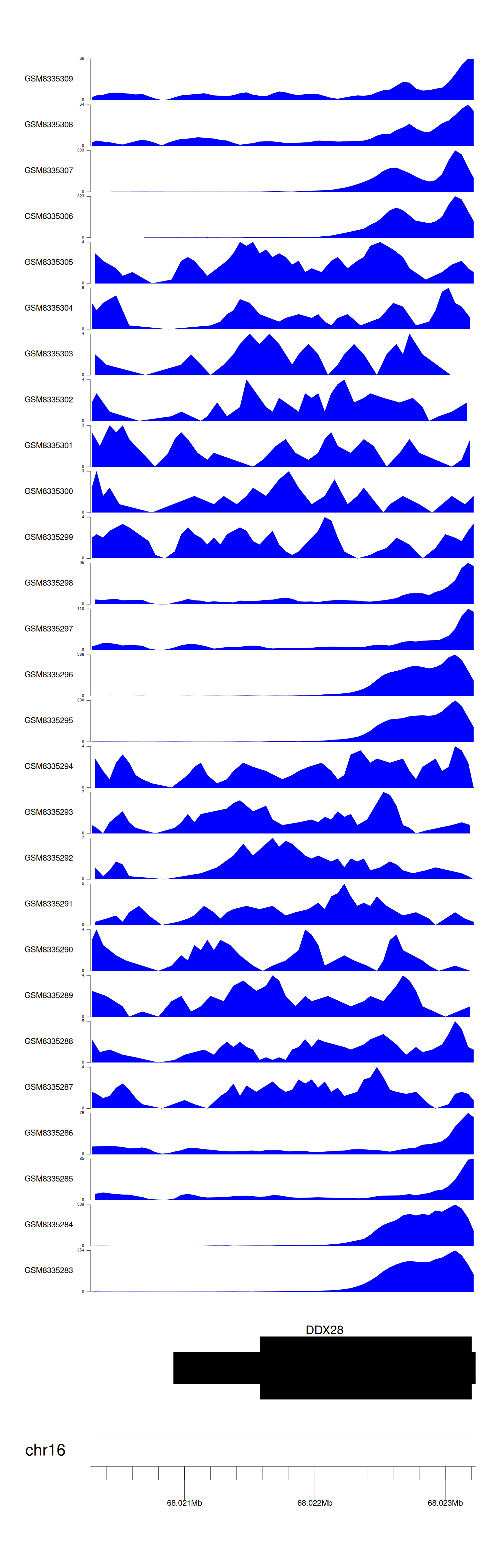 > Dataset: GSE270130 - DDX28 peak across samples
