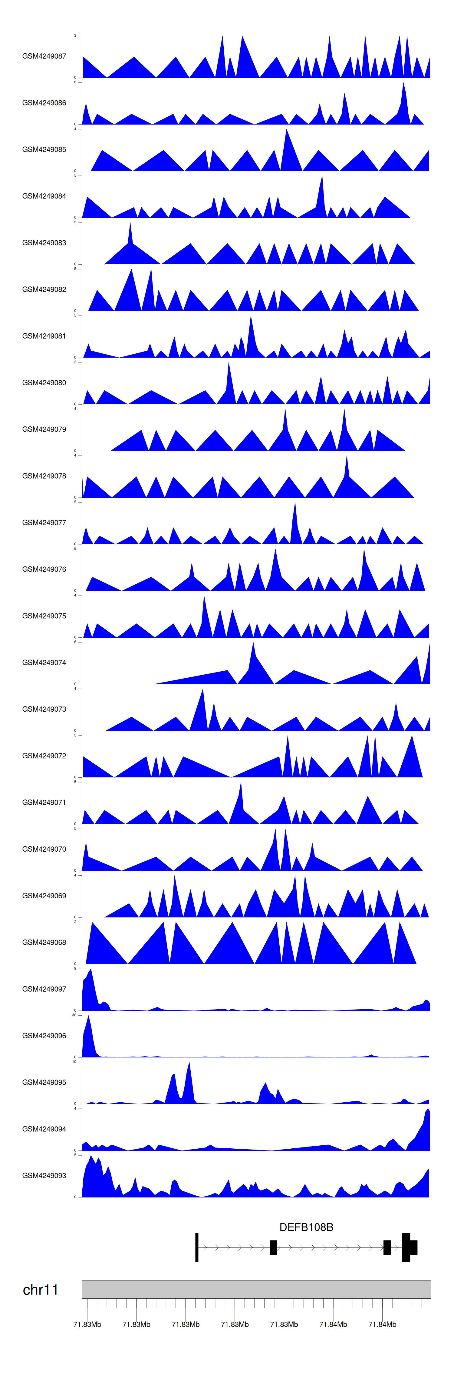 > Dataset: GSE143026 - DEFB108B peak across samples