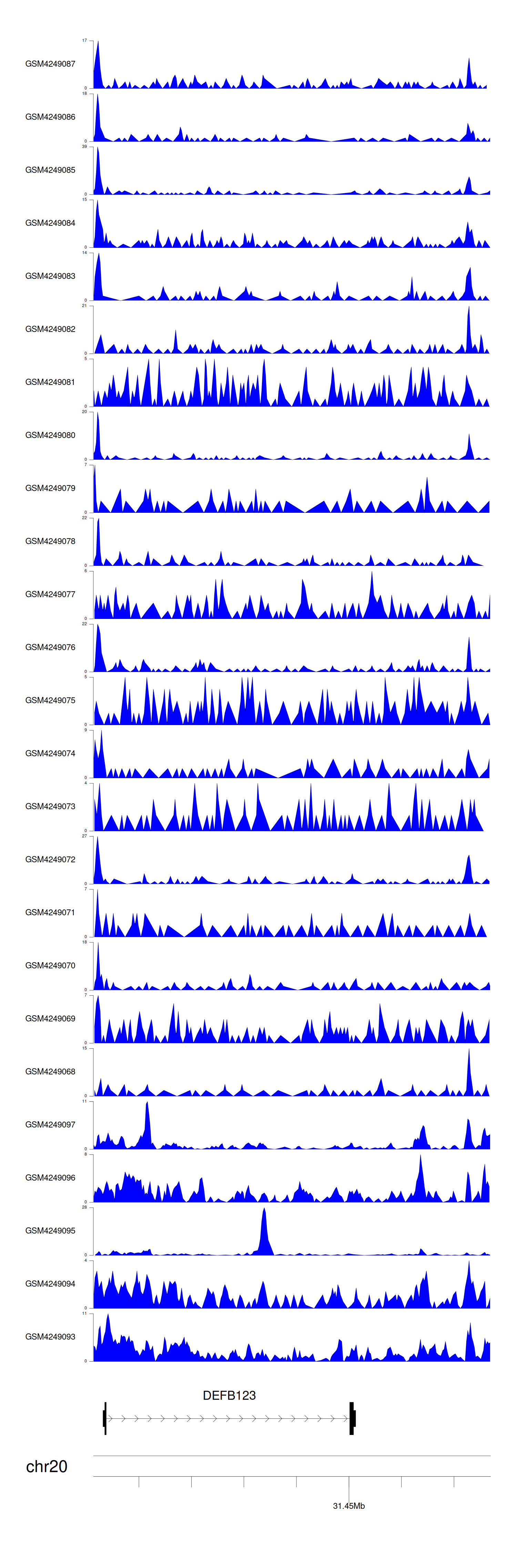 > Dataset: GSE143026 - DEFB123 peak across samples