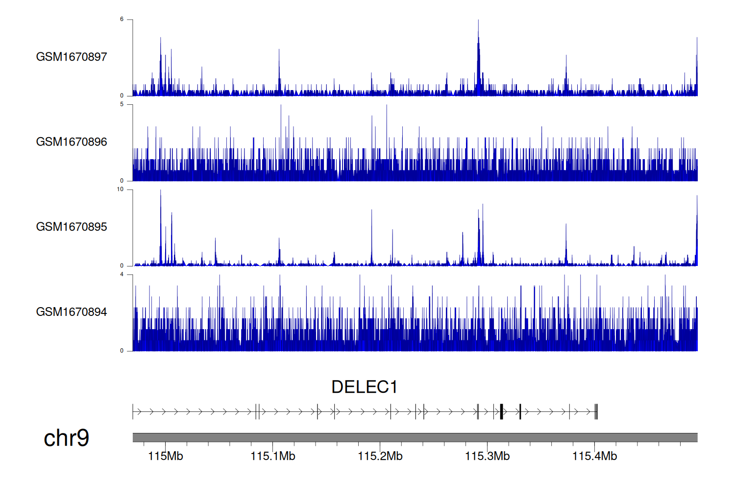 > Dataset: GSE100400 - DELEC1 peak across samples