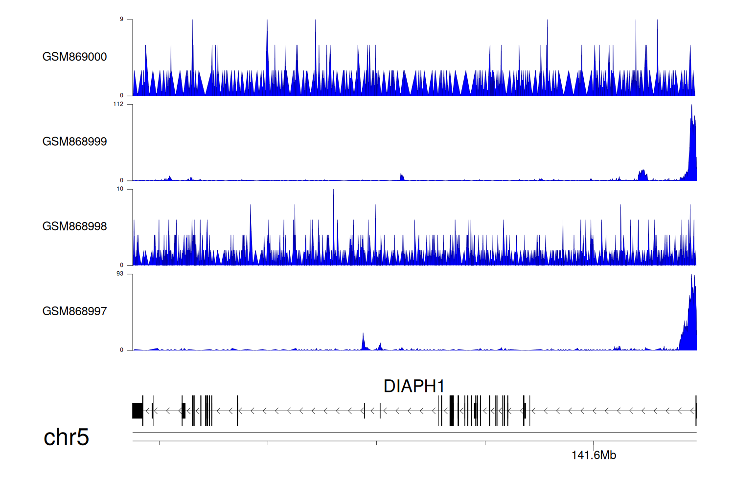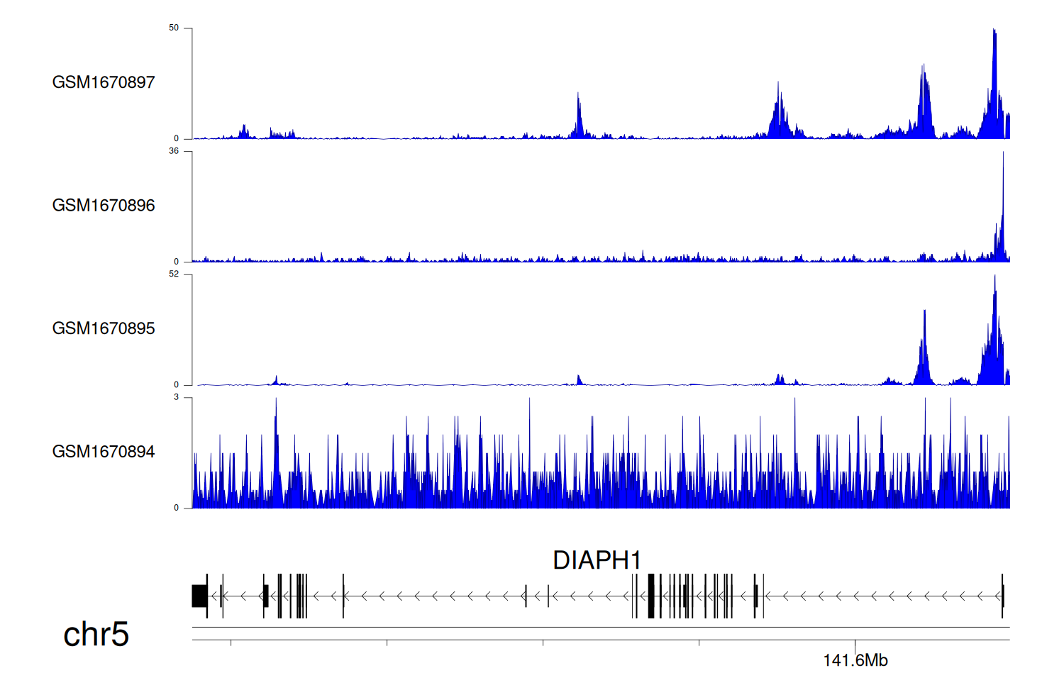 > Dataset: GSE68402 - DIAPH1 peak across samples