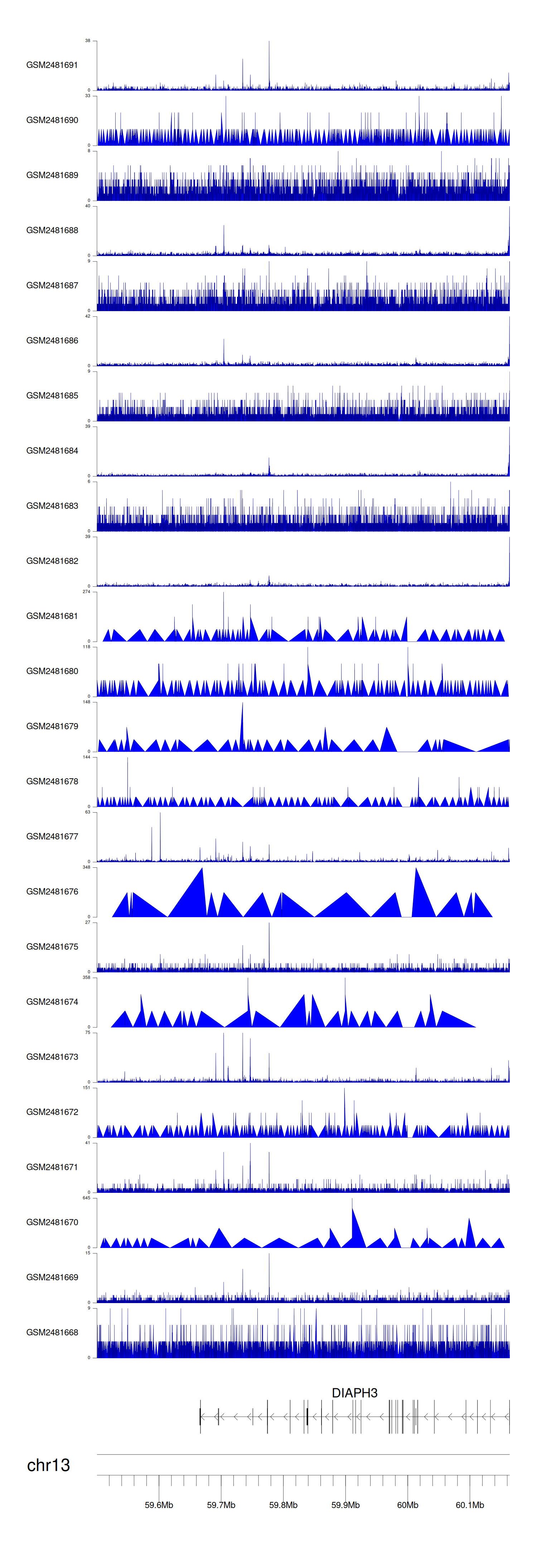 > Dataset: GSE94732 - DIAPH3 peak across samples