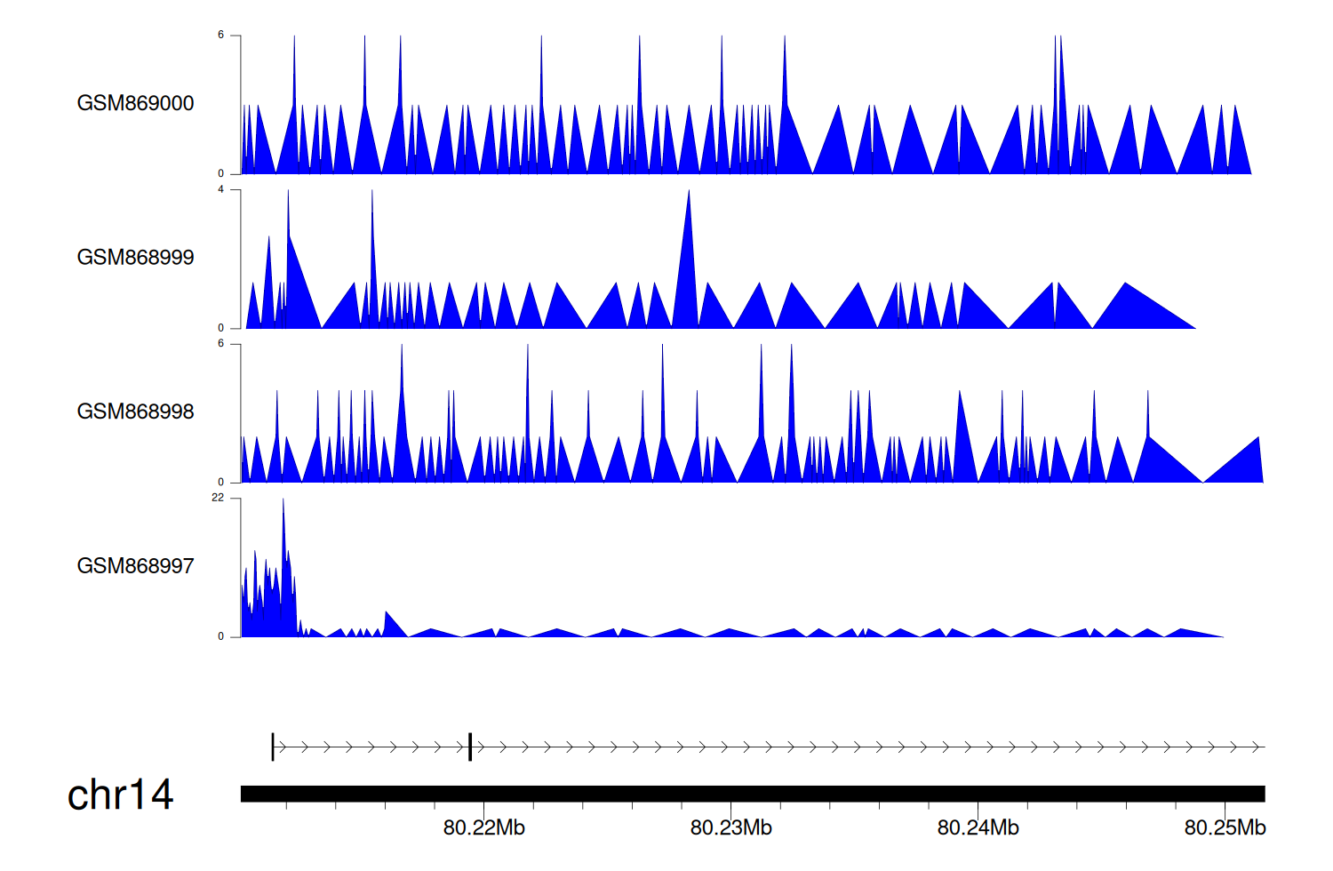 > Dataset: GSE68402 - DIO2-AS1 peak across samples