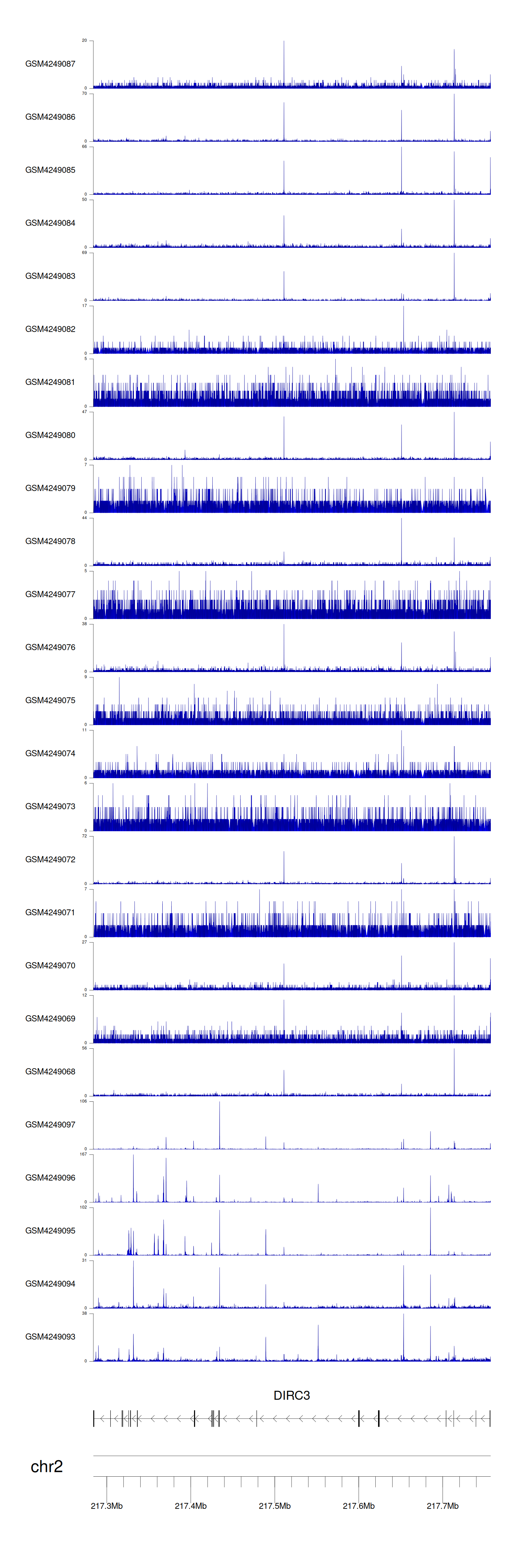 > Dataset: GSE143026 - DIRC3 peak across samples