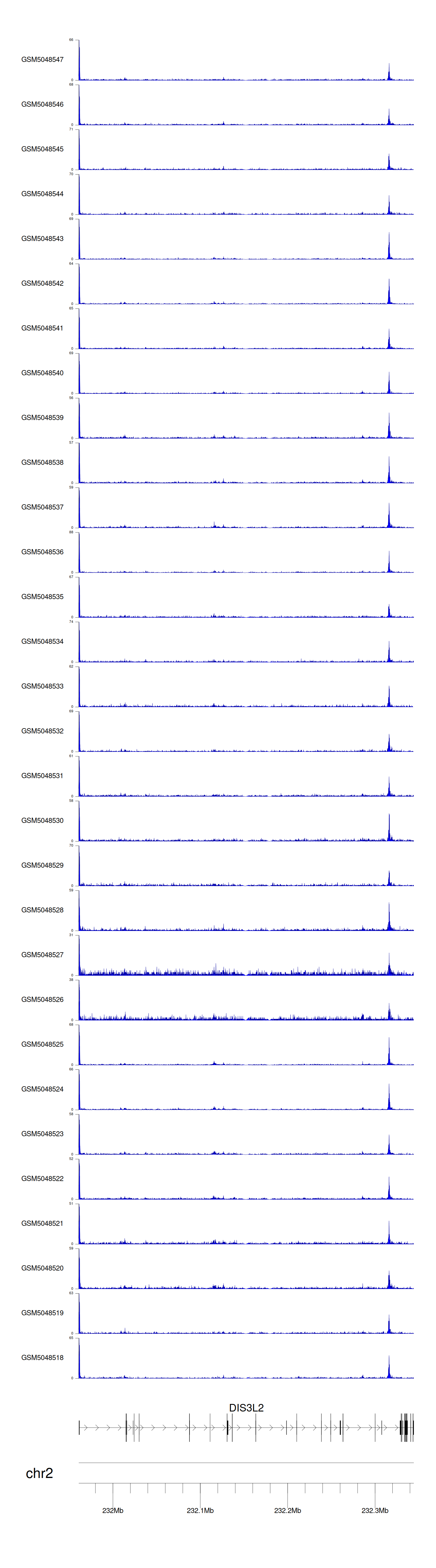 > Dataset: GSE30738 - DIS3L2 peak across samples