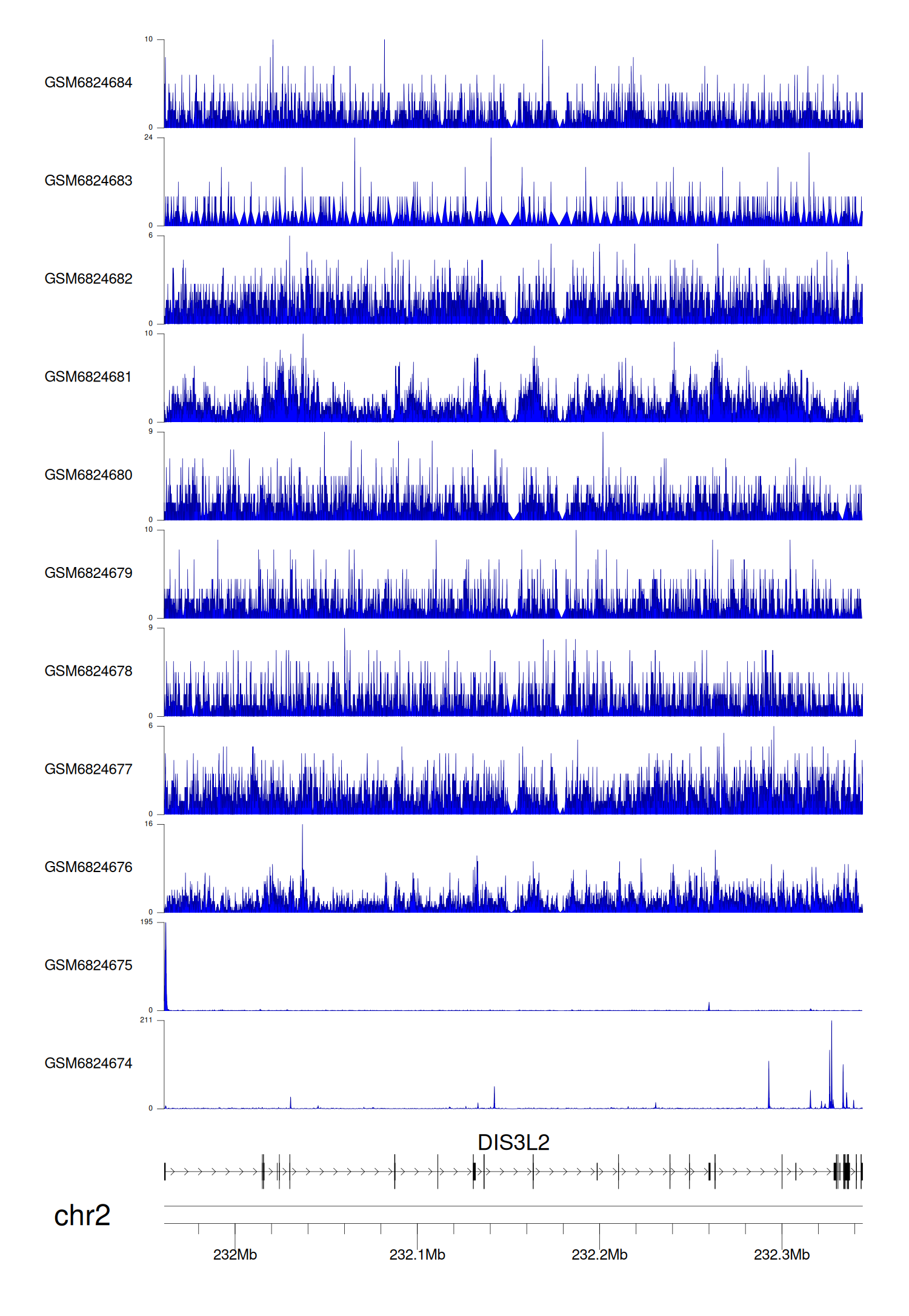 > Dataset: GSE144329 - DIS3L2 peak across samples
