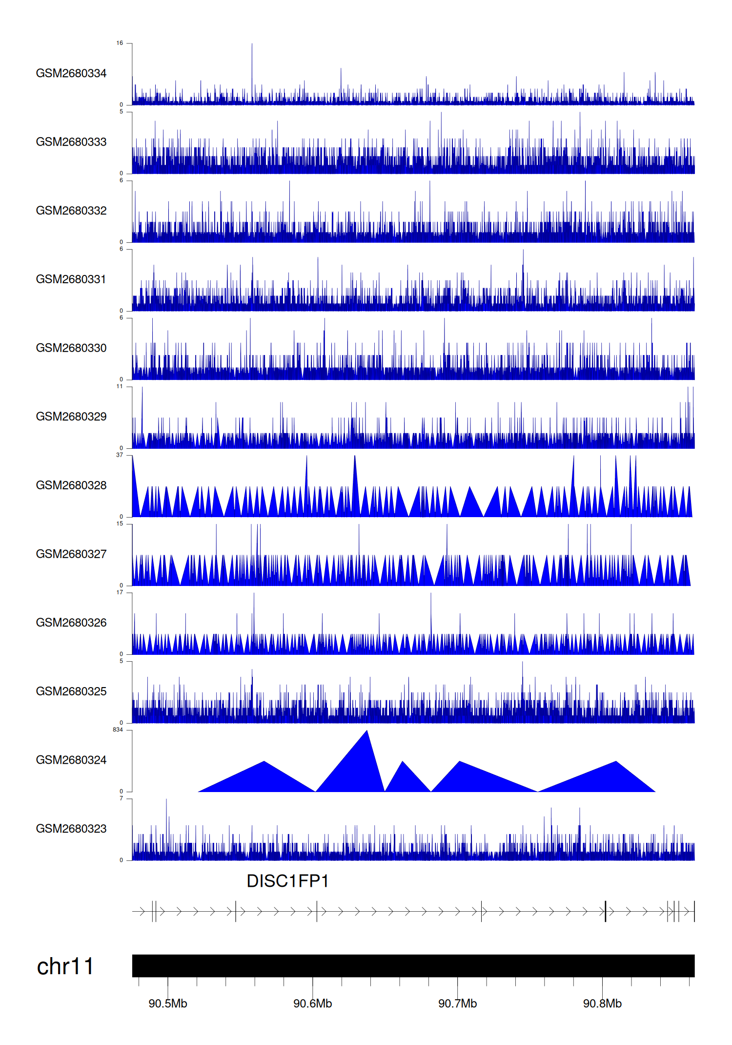 > Dataset: GSE68402 - DISC1FP1 peak across samples