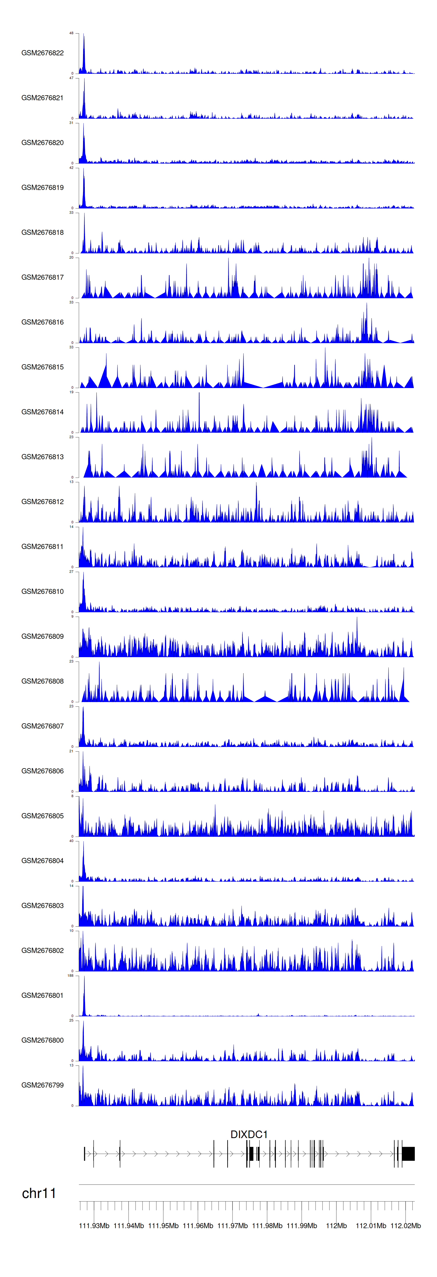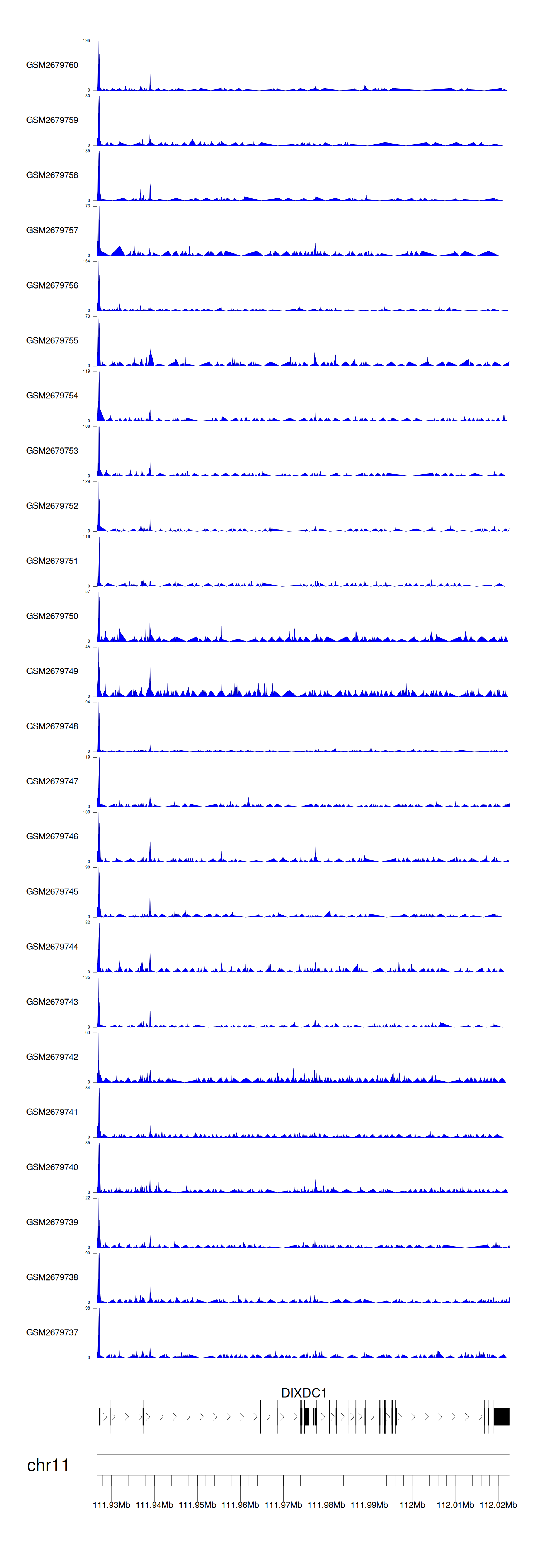 > Dataset: GSE100376 - DIXDC1 peak across samples