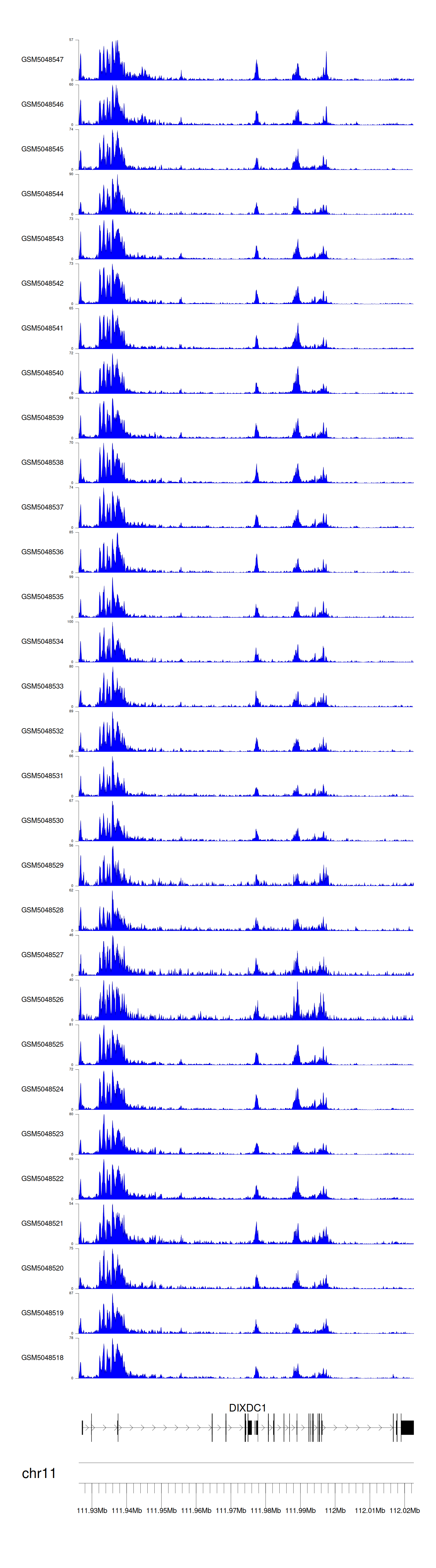> Dataset: GSE30738 - DIXDC1 peak across samples