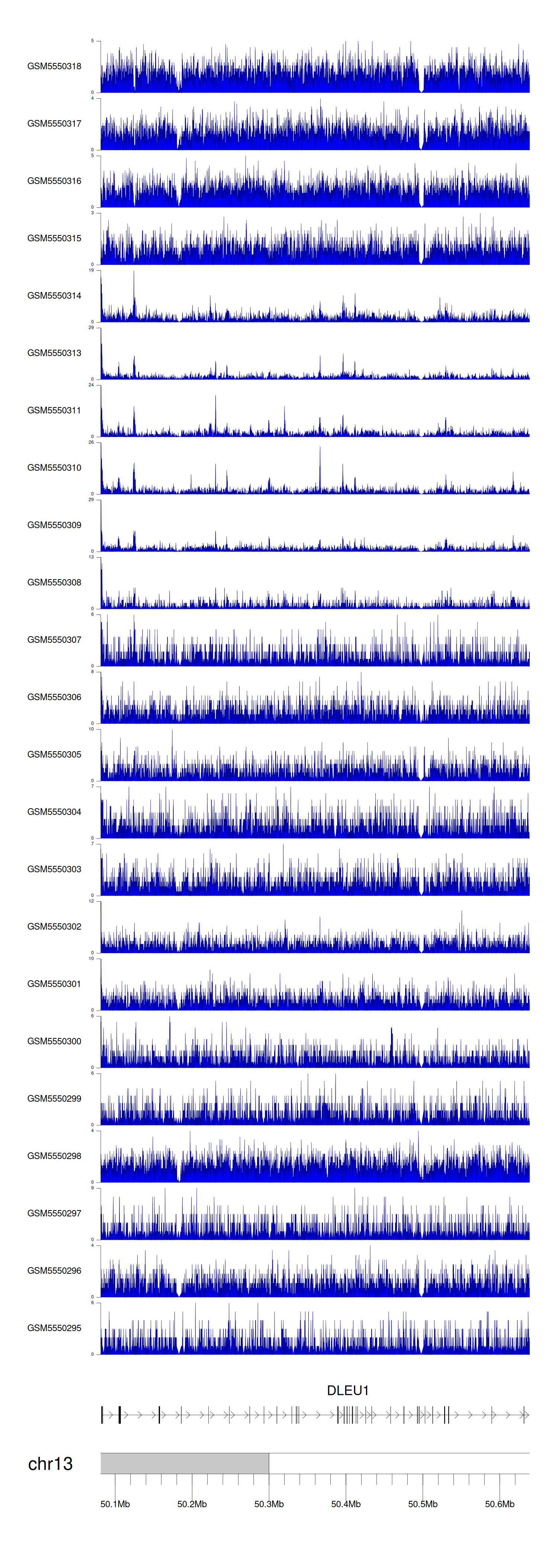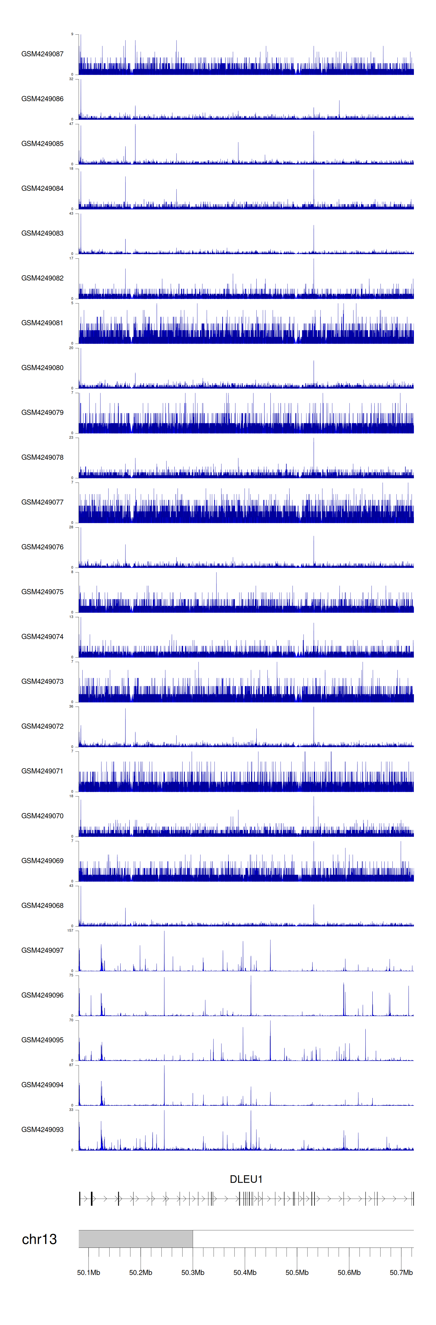 > Dataset: GSE143026 - DLEU1 peak across samples
