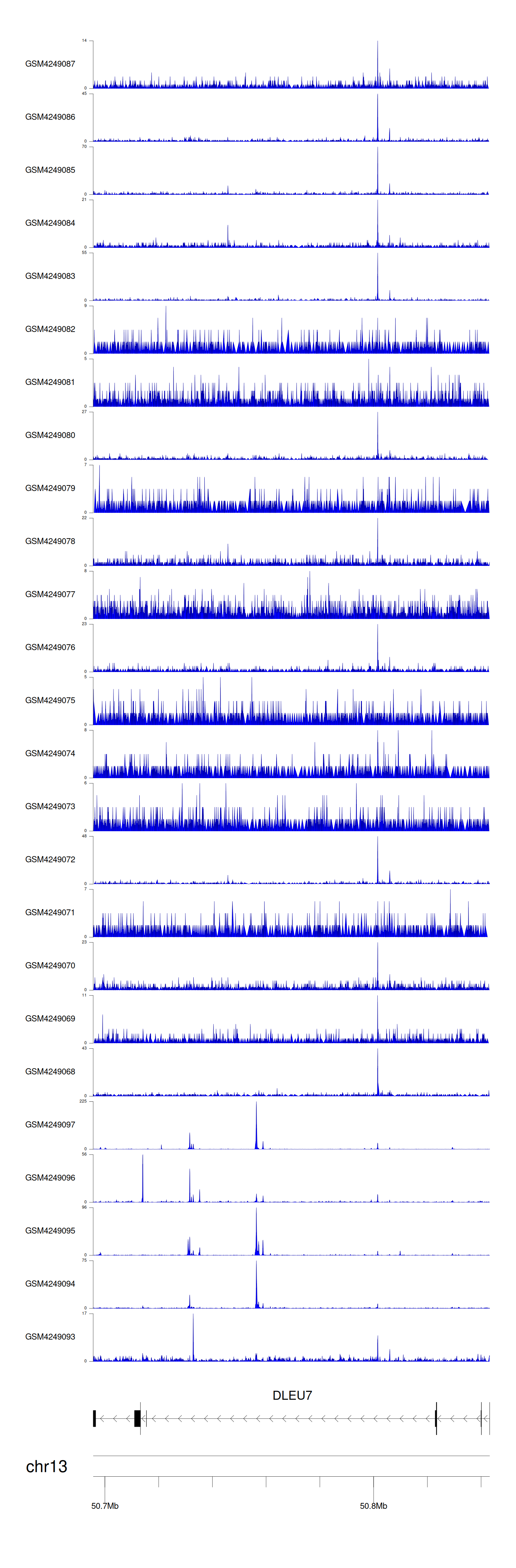 > Dataset: GSE143026 - DLEU7 peak across samples