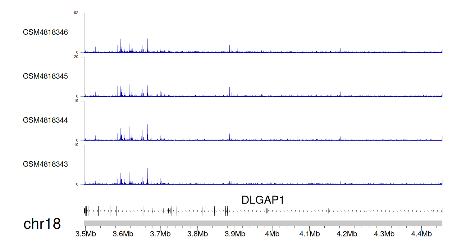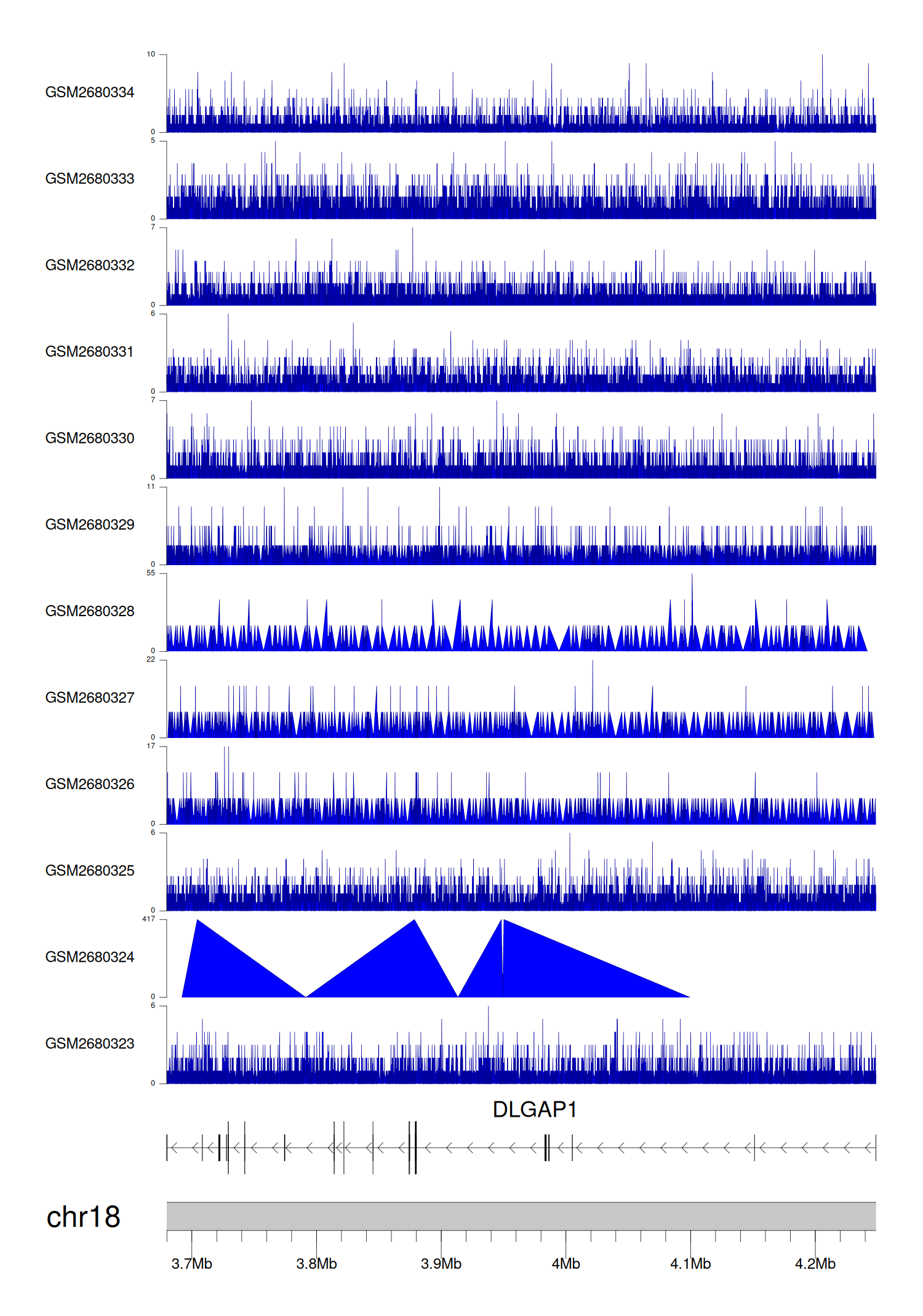> Dataset: GSE100400 - DLGAP1 peak across samples