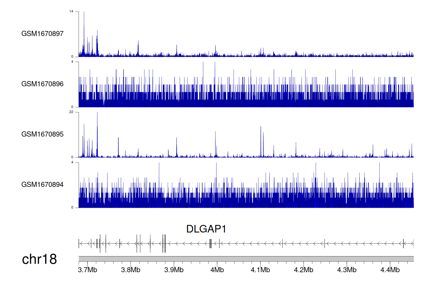 > Dataset: GSE68402 - DLGAP1 peak across samples