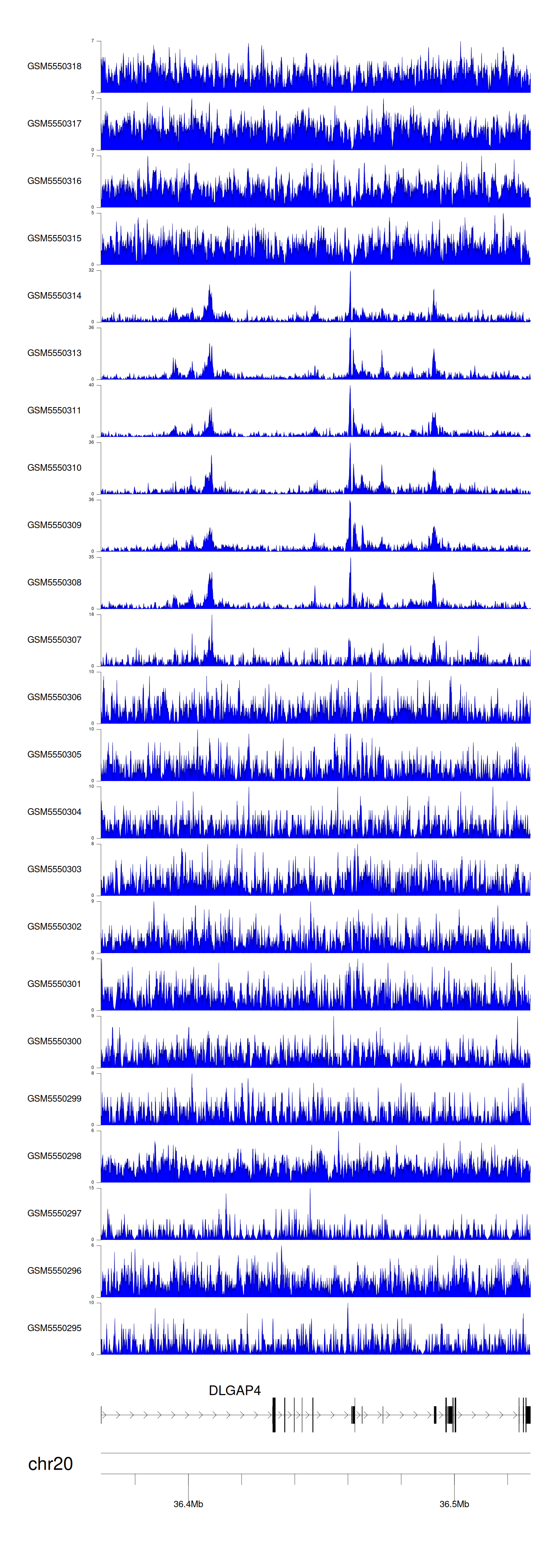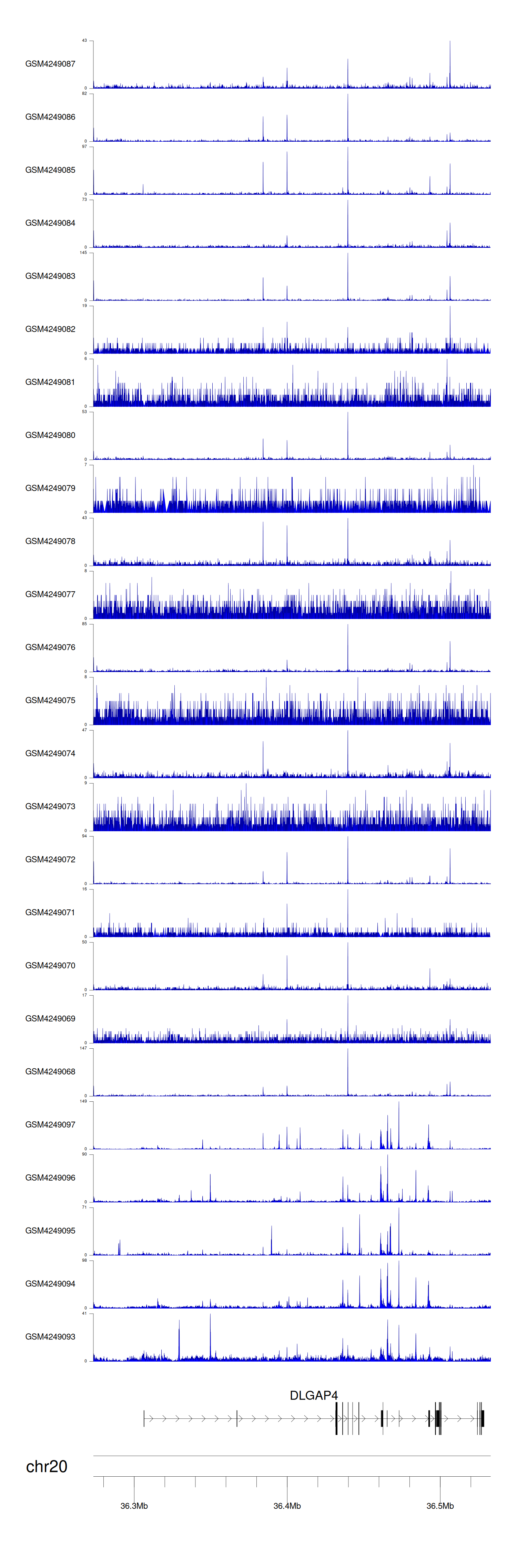> Dataset: GSE143026 - DLGAP4 peak across samples