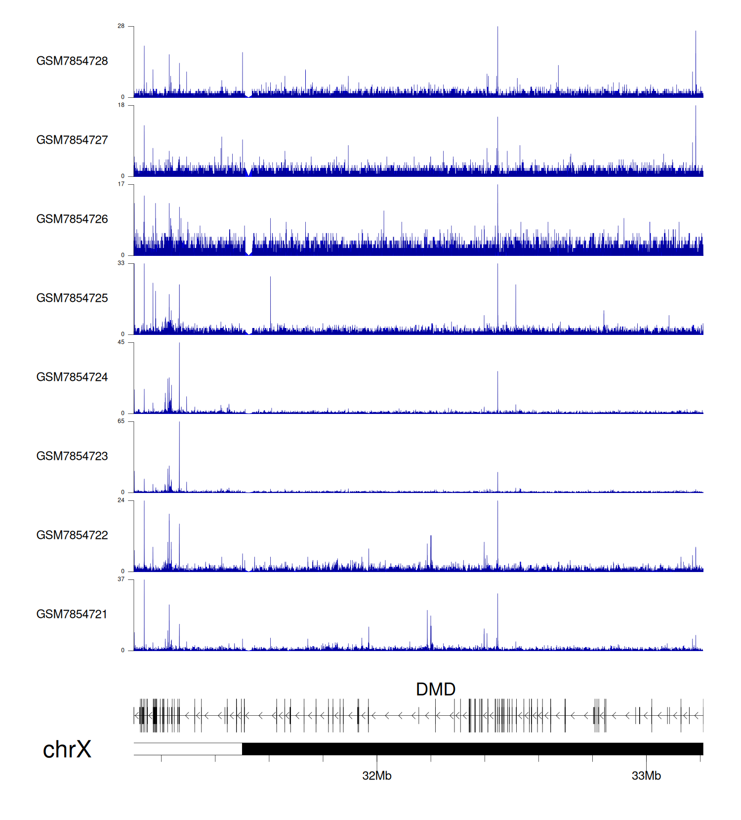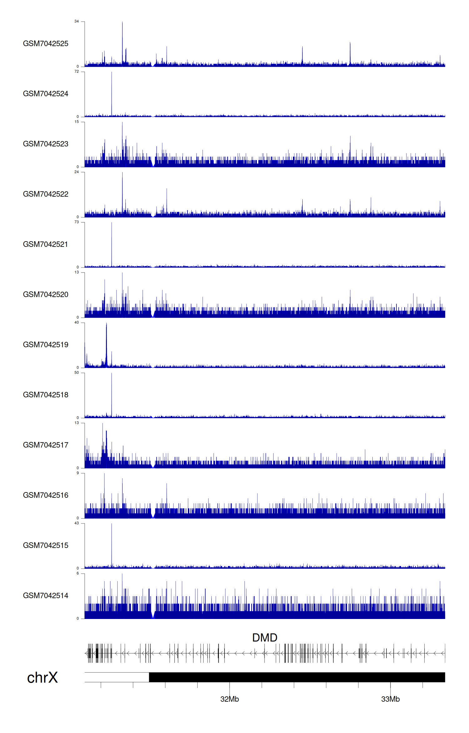 Summary This gene spans a genomic range of greater than 2 Mb and encodes a large protein containing an N-terminal actin-binding domain and multiple spectrin repeats. The encoded protein forms a component of the dystrophin-glycoprotein complex (DGC), which bridges the inner cytoskeleton and the extracellular matrix. Deletions, duplications, and point mutations at this gene locus may cause Duchenne muscular dystrophy (DMD), Becker muscular dystrophy (BMD), or cardiomyopathy. Alternative promoter usage and alternative splicing result in numerous distinct transcript variants and protein isoforms for this gene. [provided by RefSeq, Dec 2016]