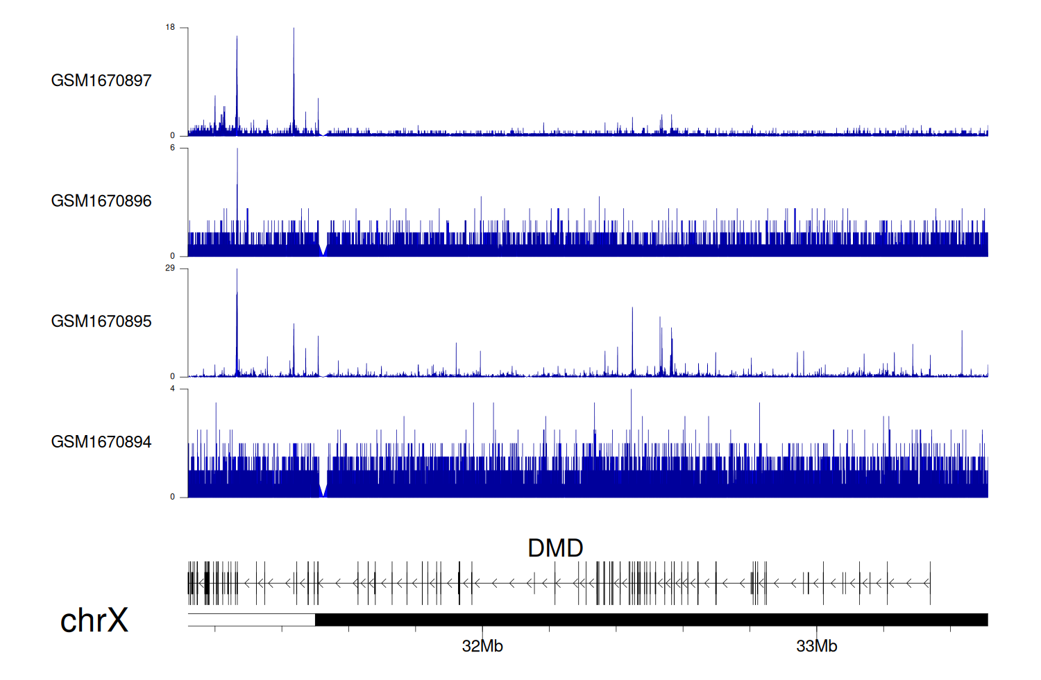 > Dataset: GSE68402 - DMD peak across samples