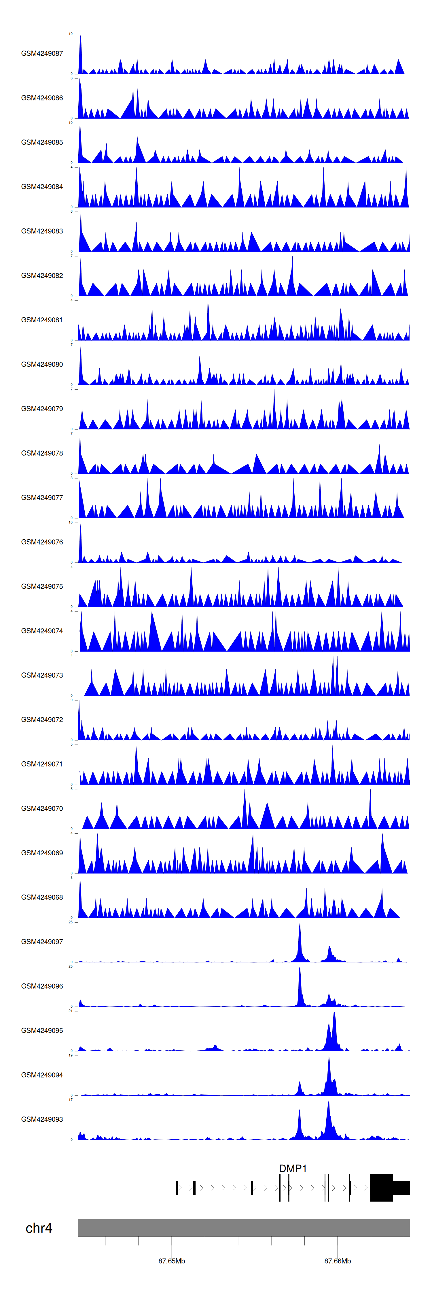 > Dataset: GSE143026 - DMP1 peak across samples