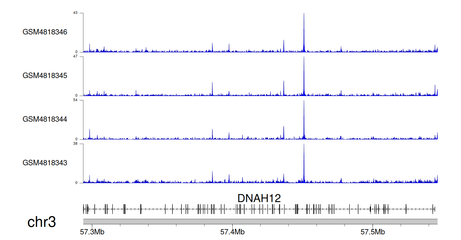 > Dataset: GSE131257 - DNAH12 peak across samples