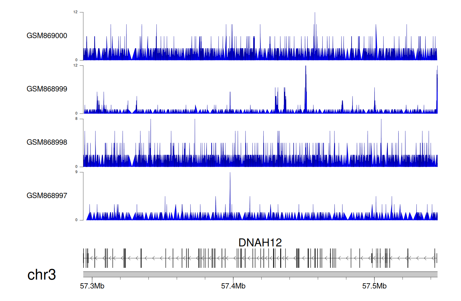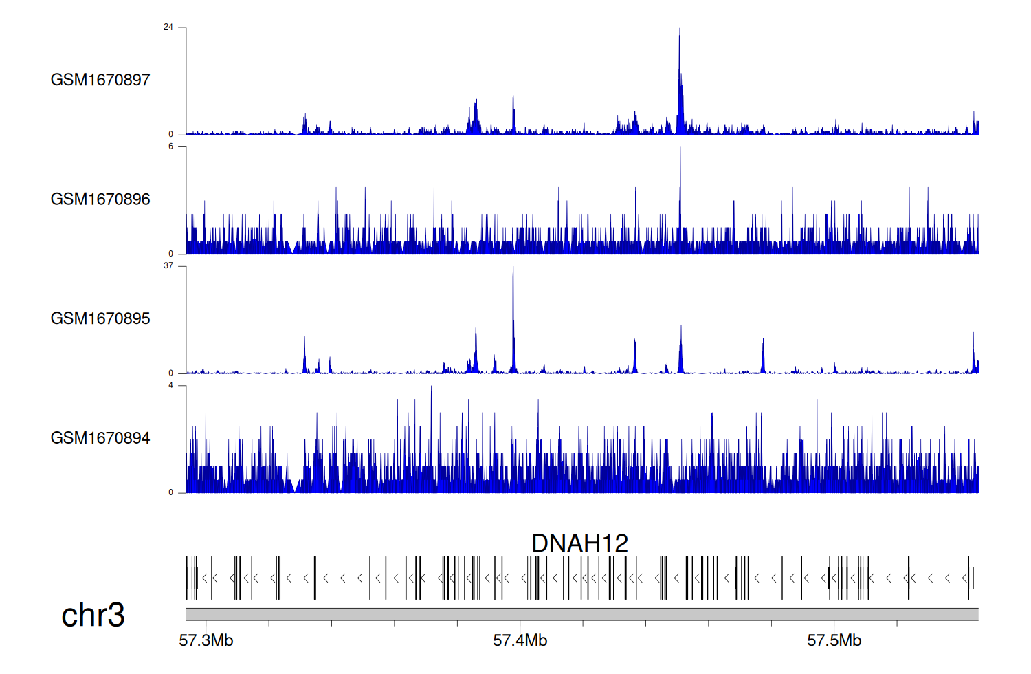 > Dataset: GSE68402 - DNAH12 peak across samples