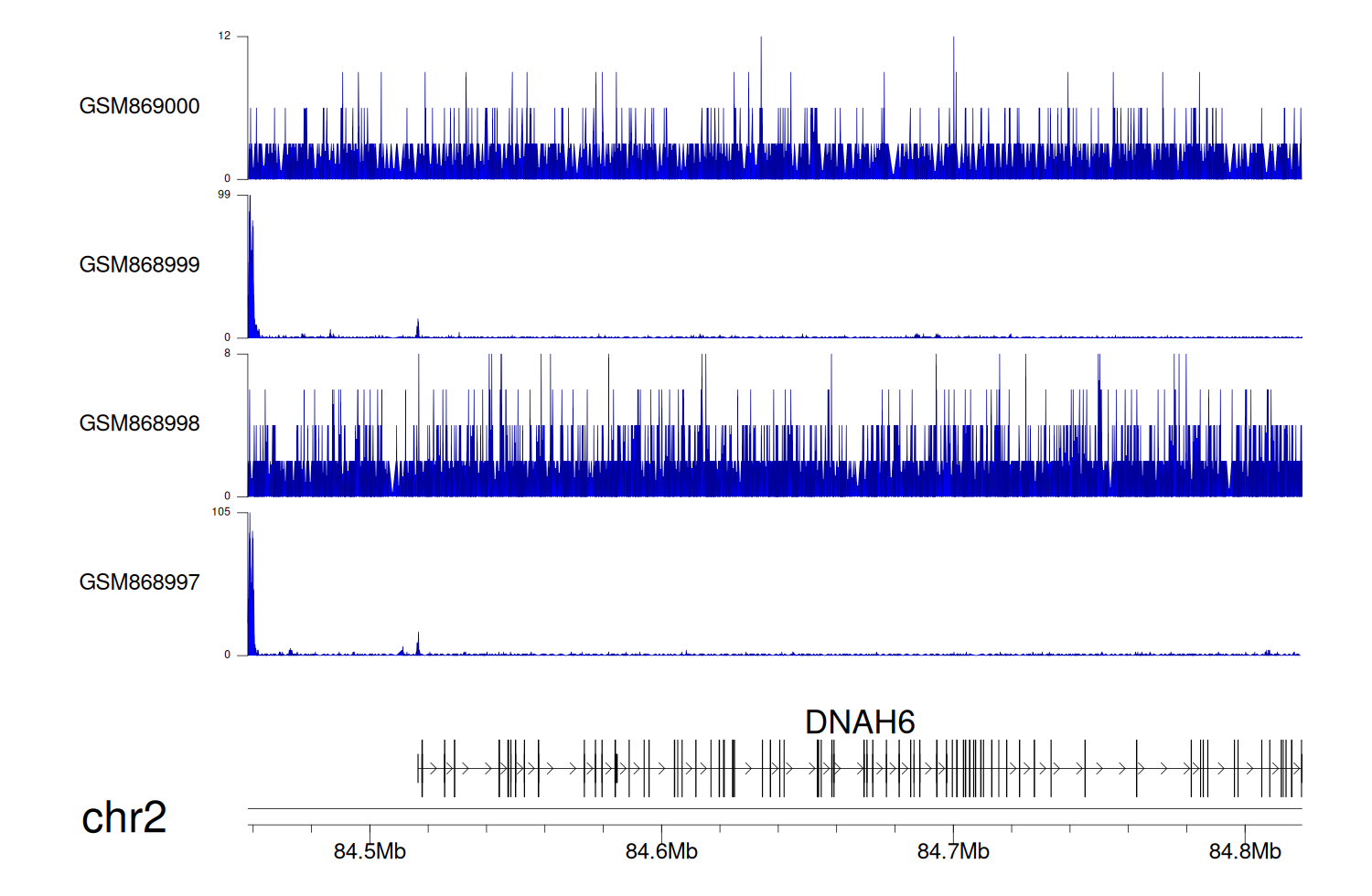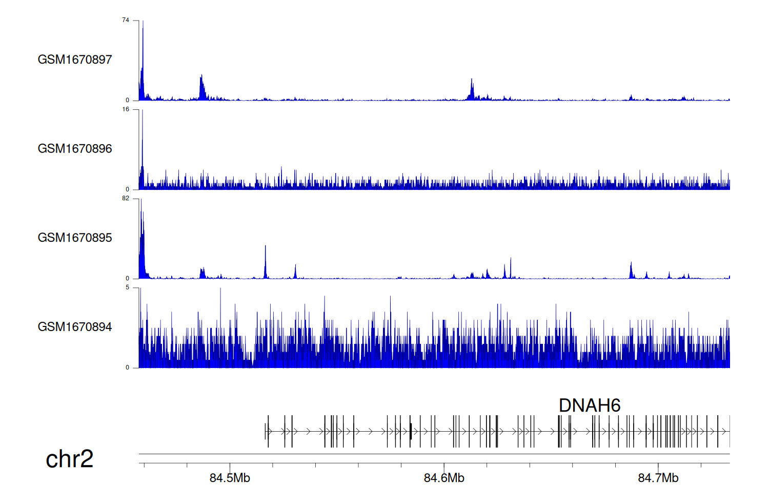> Dataset: GSE68402 - DNAH6 peak across samples