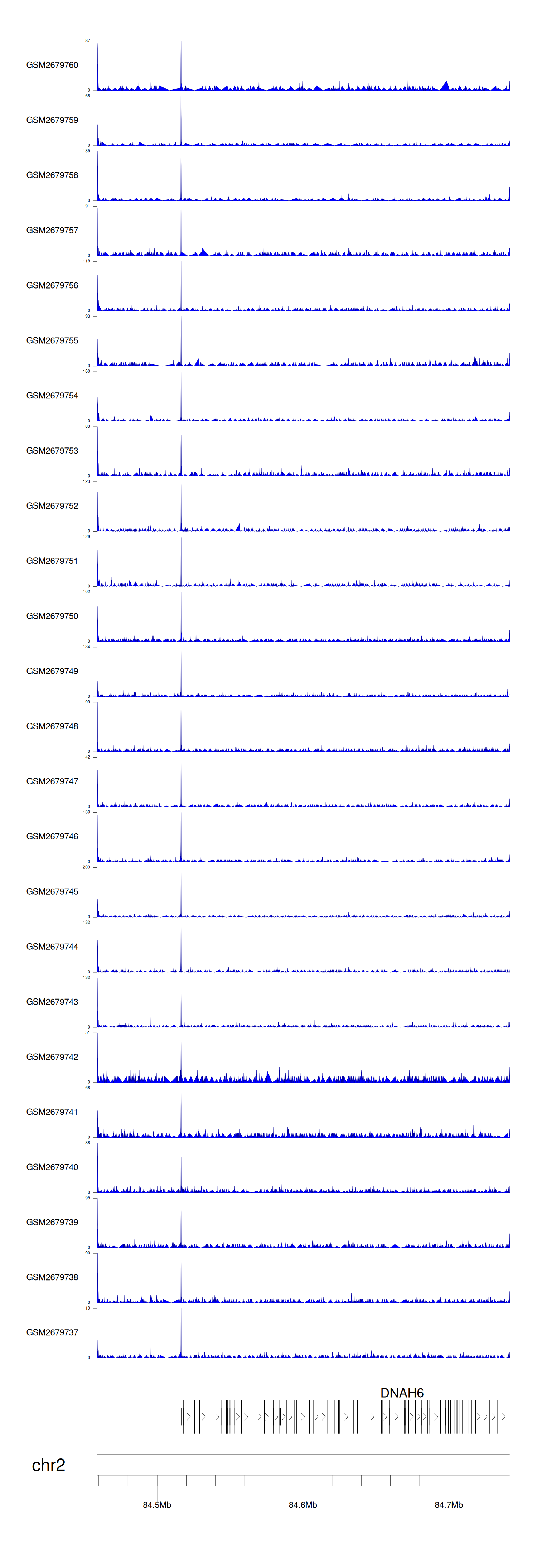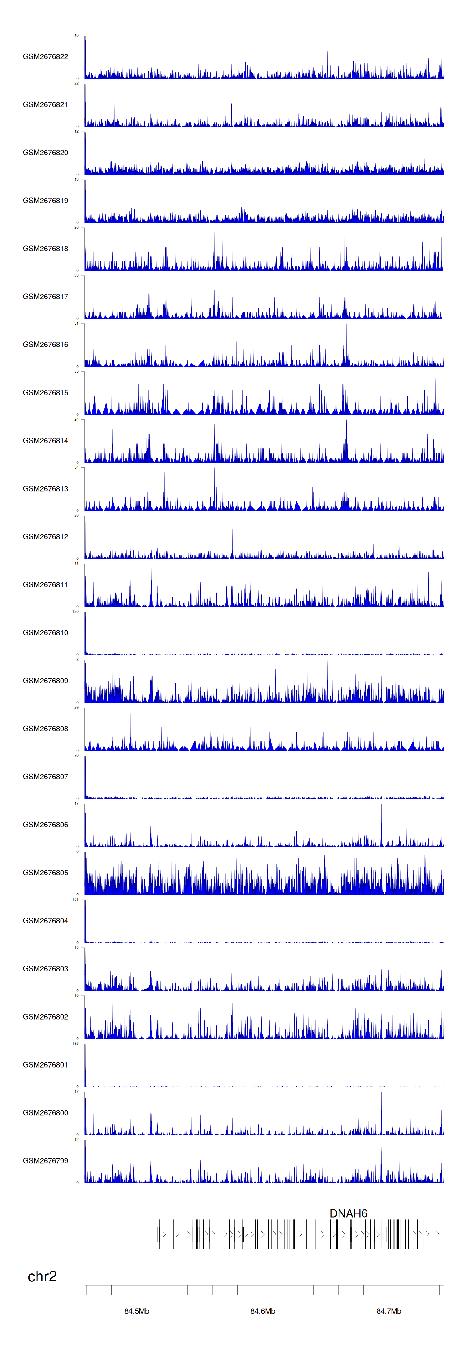 > Dataset: GSE100376 - DNAH6 peak across samples