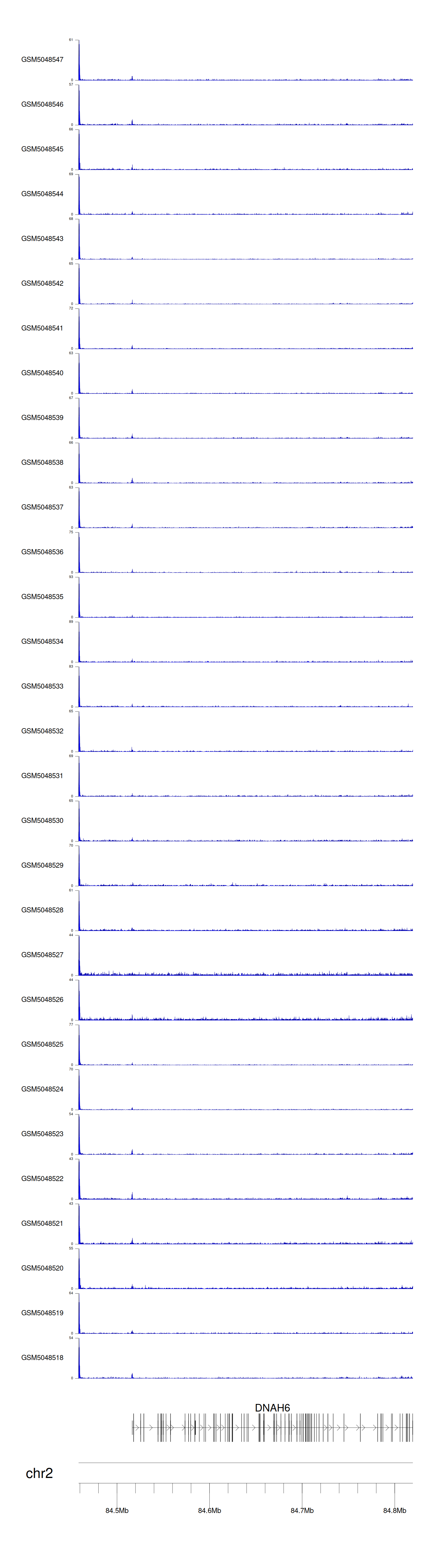> Dataset: GSE30738 - DNAH6 peak across samples