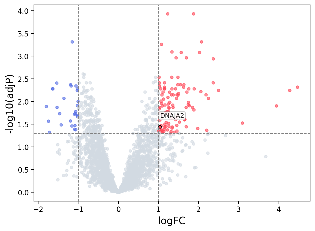 When the query gene is differentially changed in the dataset, a volcano/bar plot will be displayed.