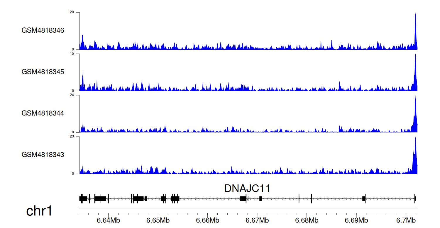 > Dataset: GSE131257 - DNAJC11 peak across samples