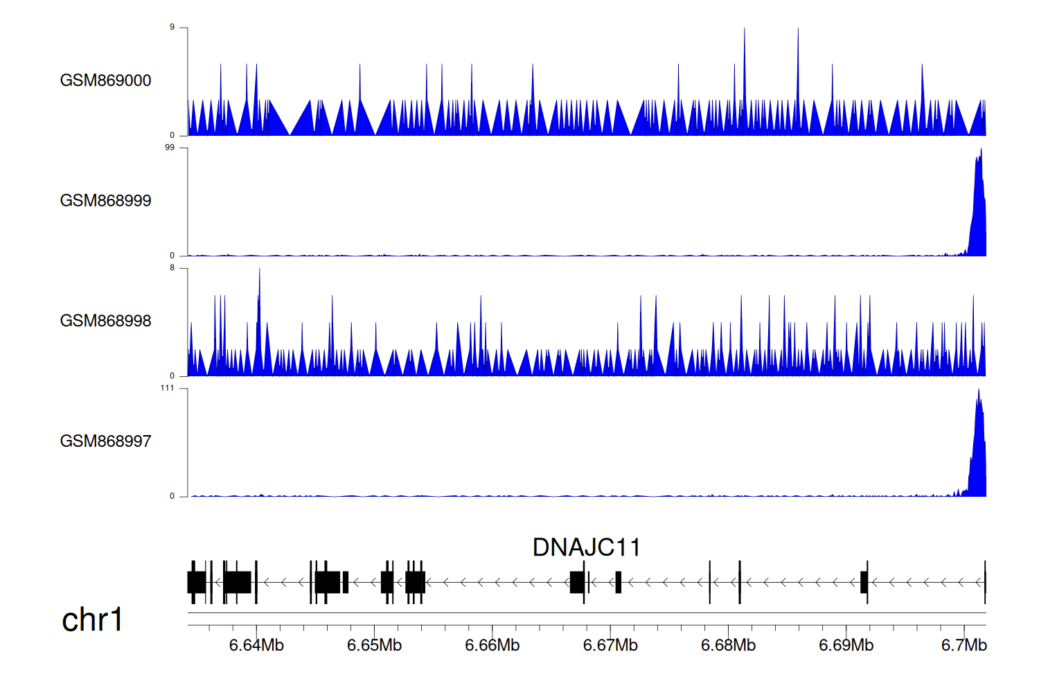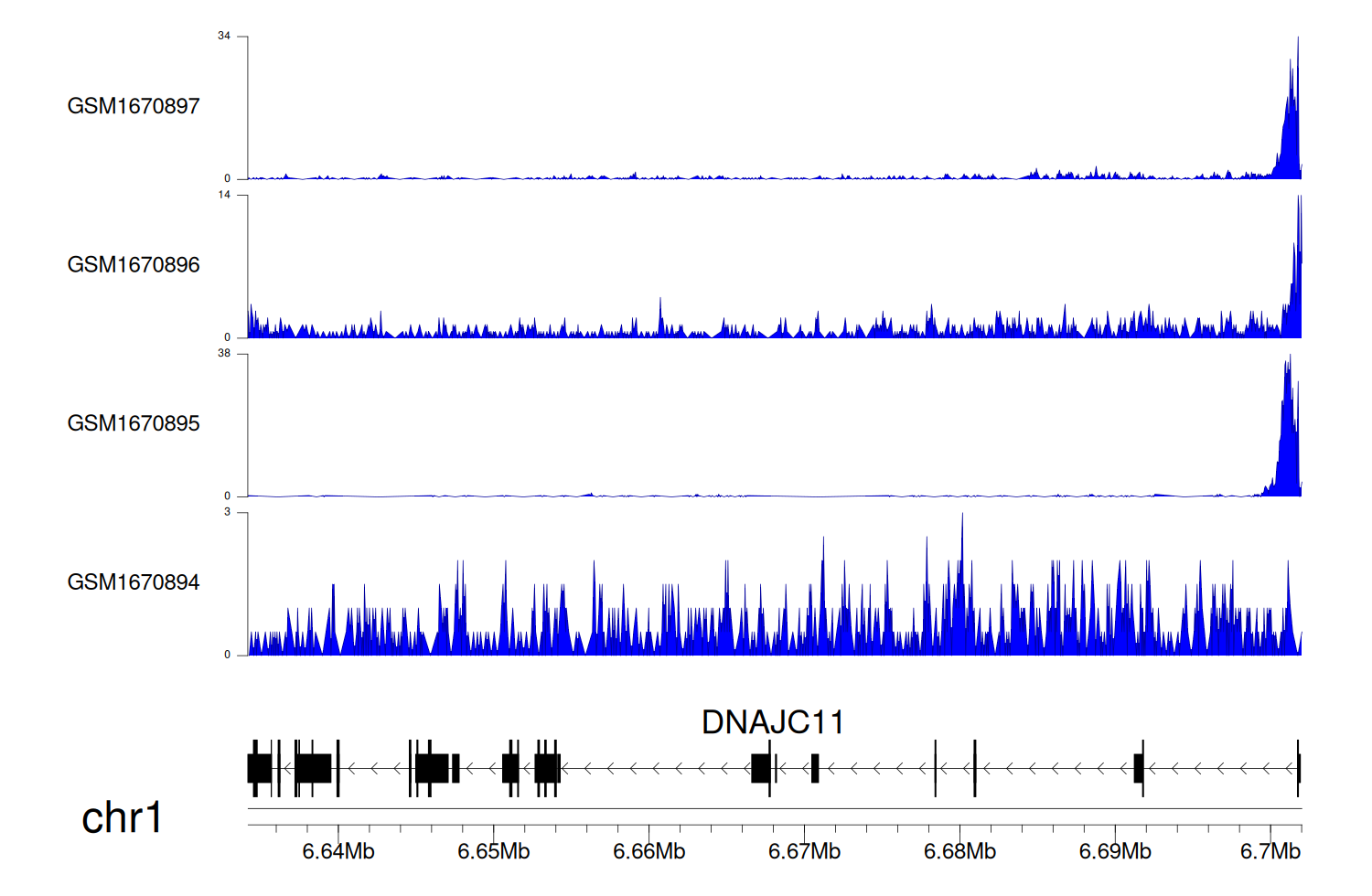 > Dataset: GSE68402 - DNAJC11 peak across samples