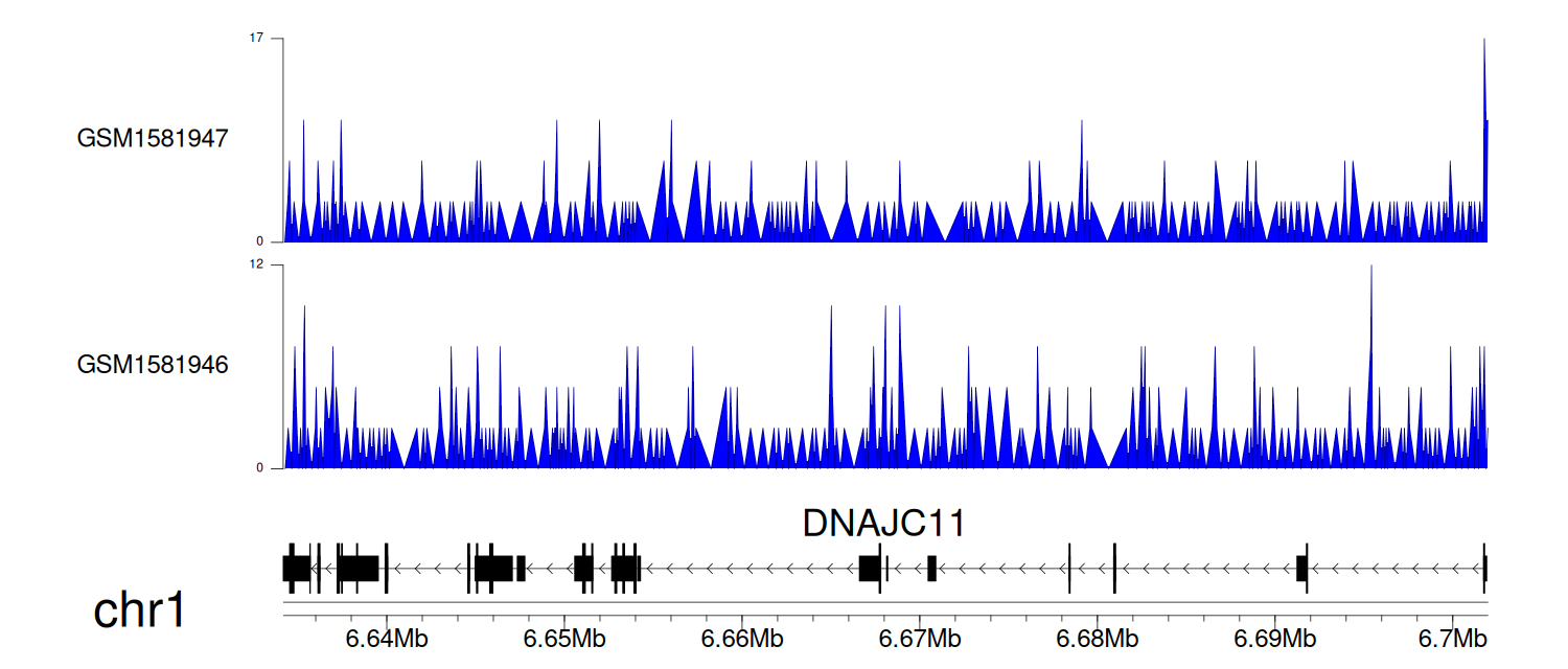 > Dataset: GSE64877 - DNAJC11 peak across samples