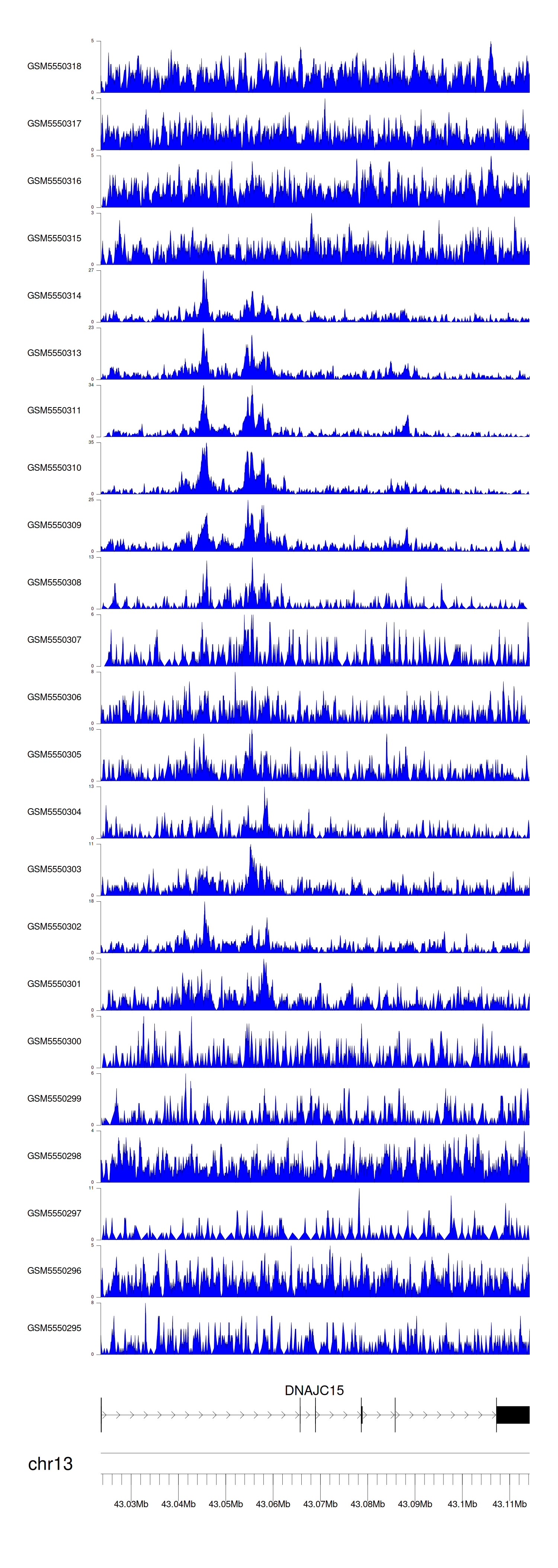 > Dataset: GSE143026 - DNAJC15 peak across samples