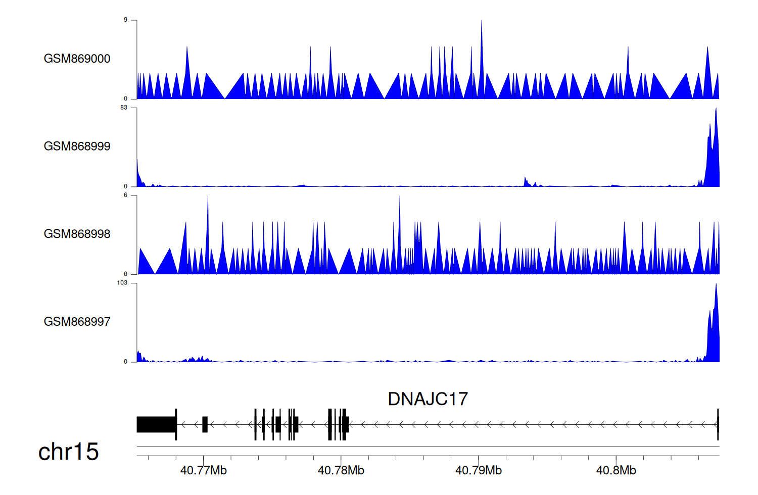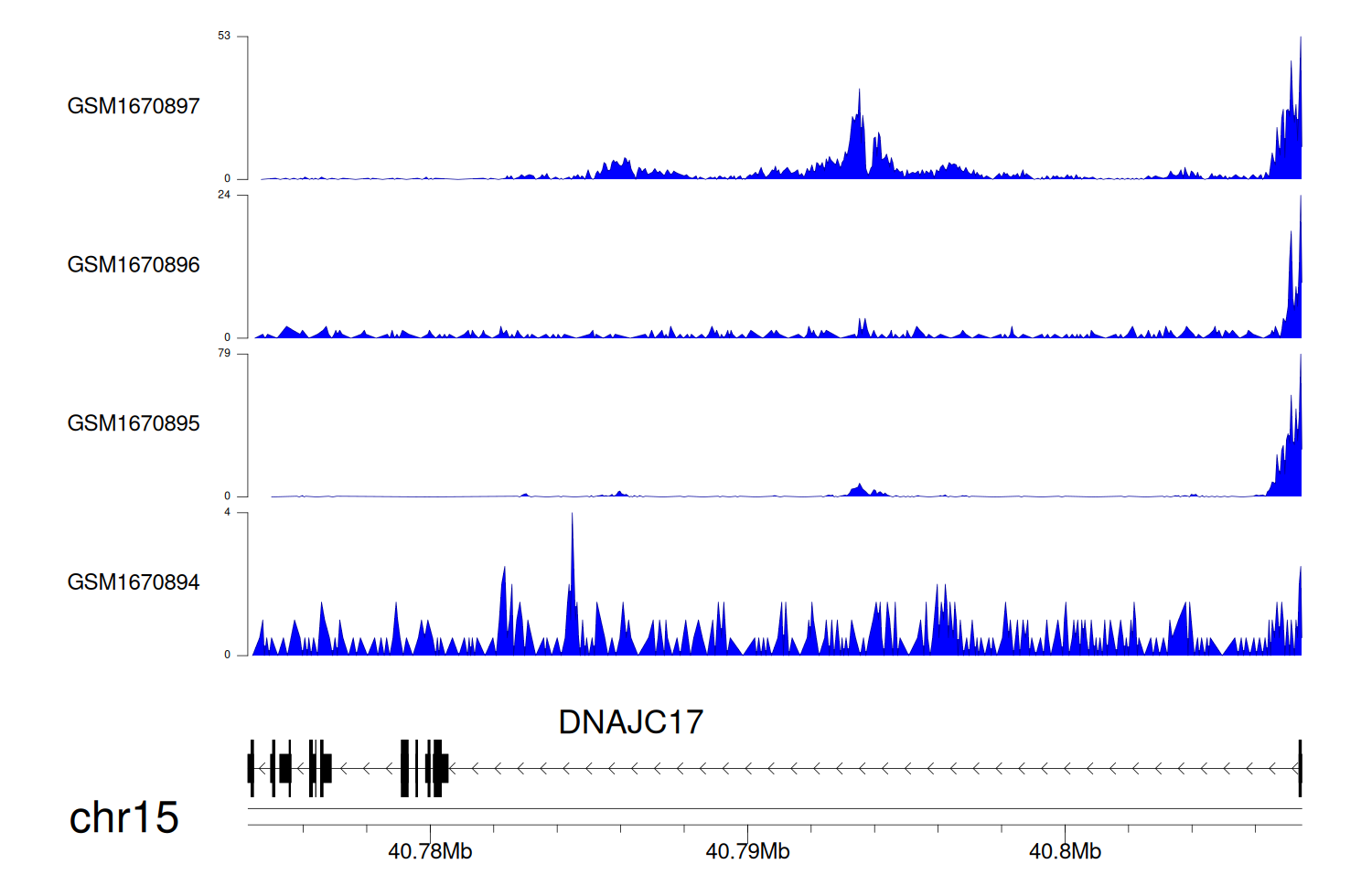> Dataset: GSE68402 - DNAJC17 peak across samples
