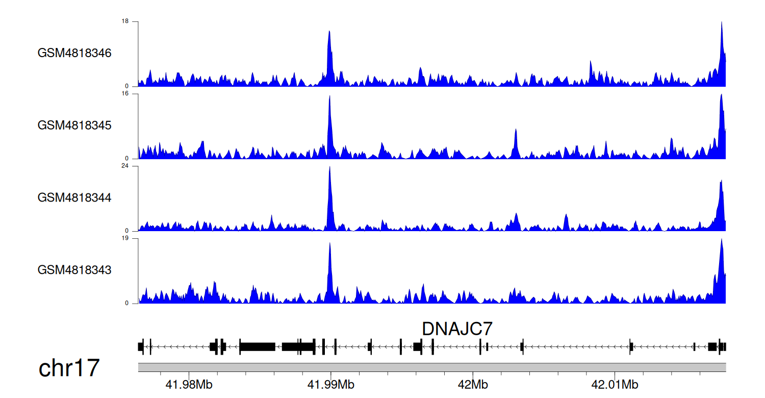 > Dataset: GSE270130 - DNAJC7 peak across samples