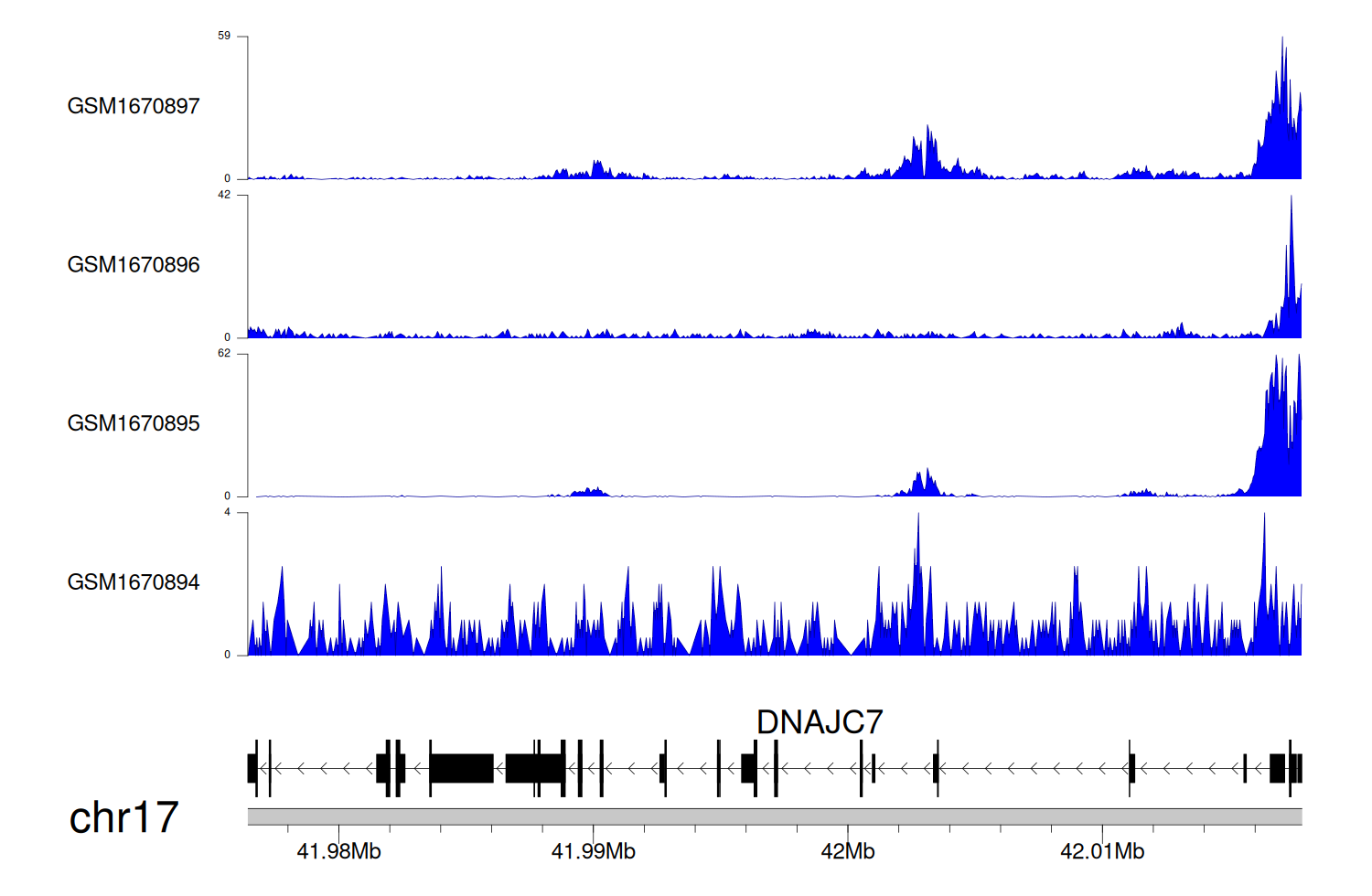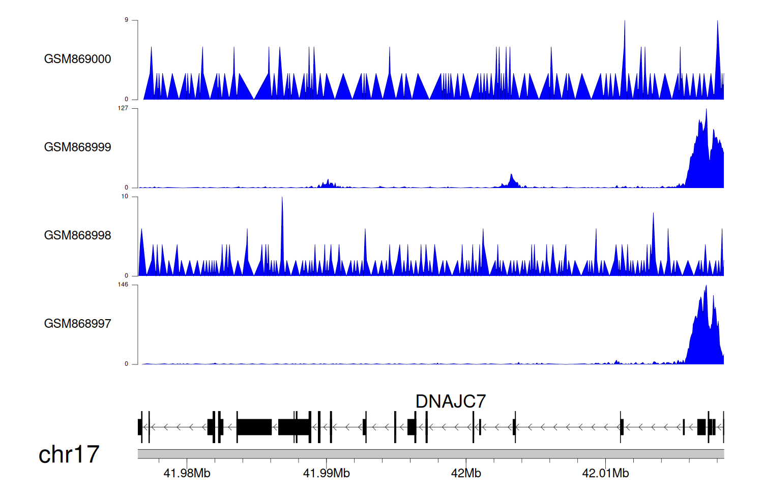 > Dataset: GSE68402 - DNAJC7 peak across samples