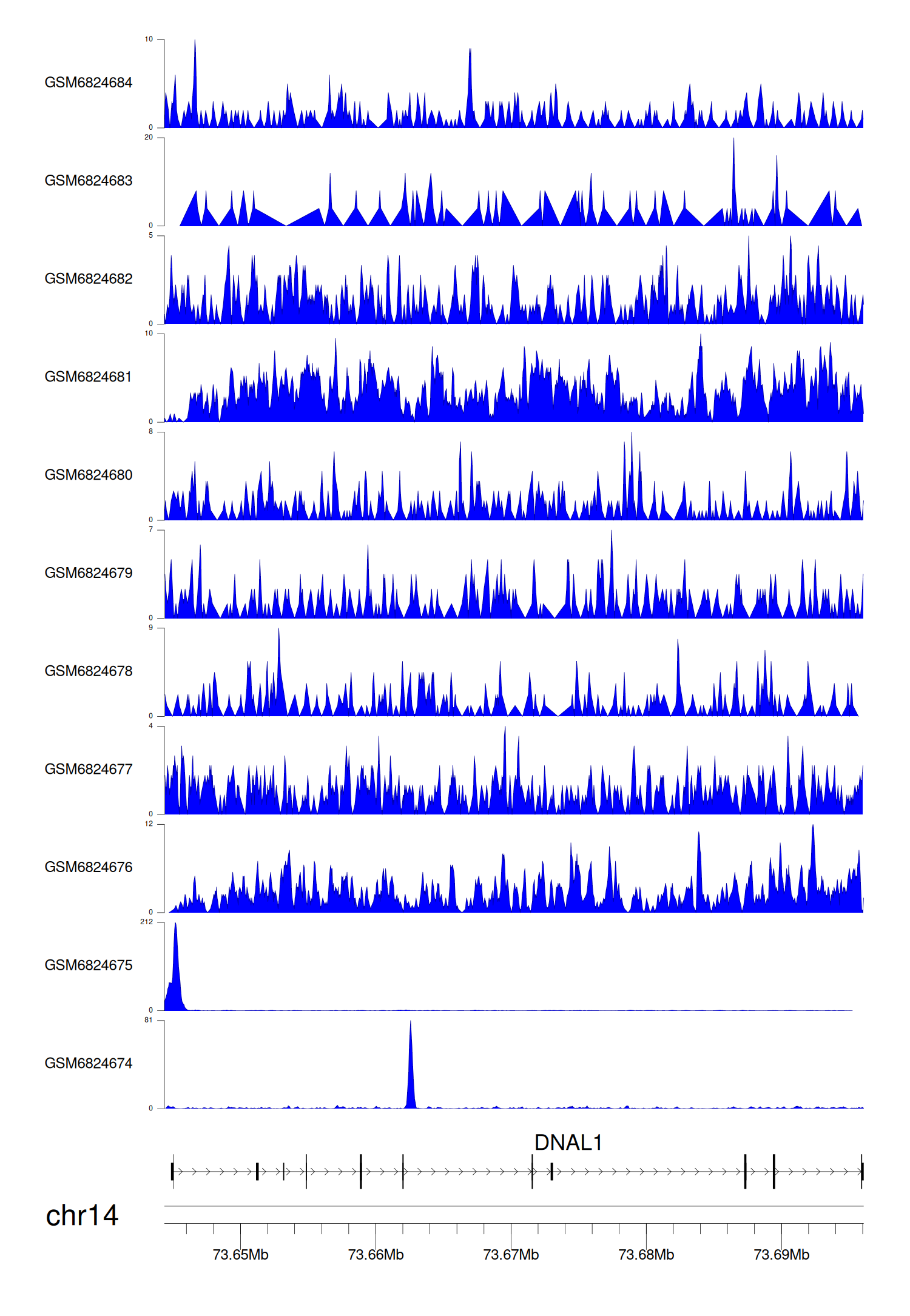 > Dataset: GSE144329 - DNAL1 peak across samples