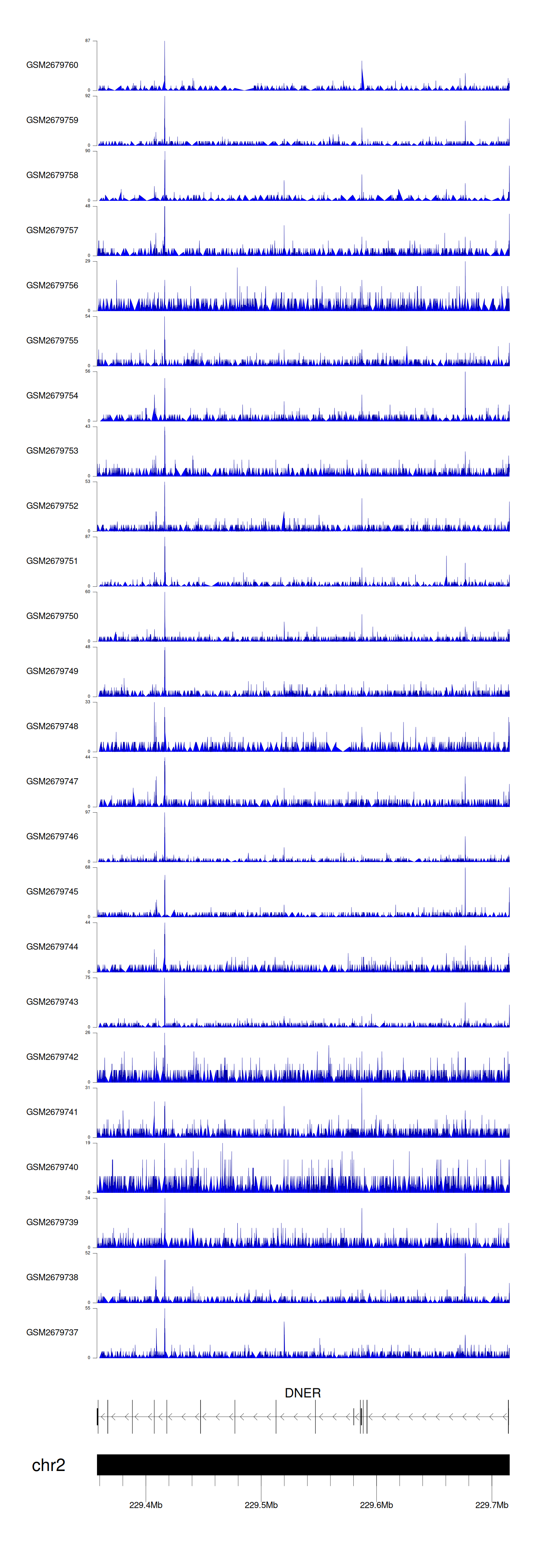 > Dataset: GSE30738 - DNER peak across samples