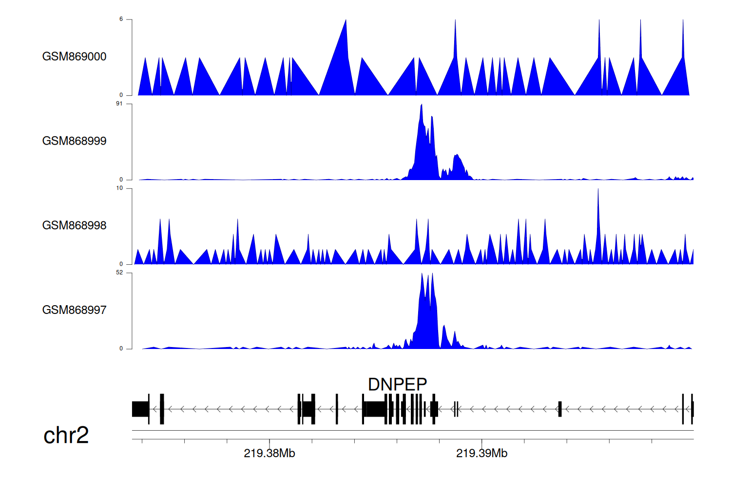 When the gene can detect a peak in the dataset, a peak plot will be displayed.