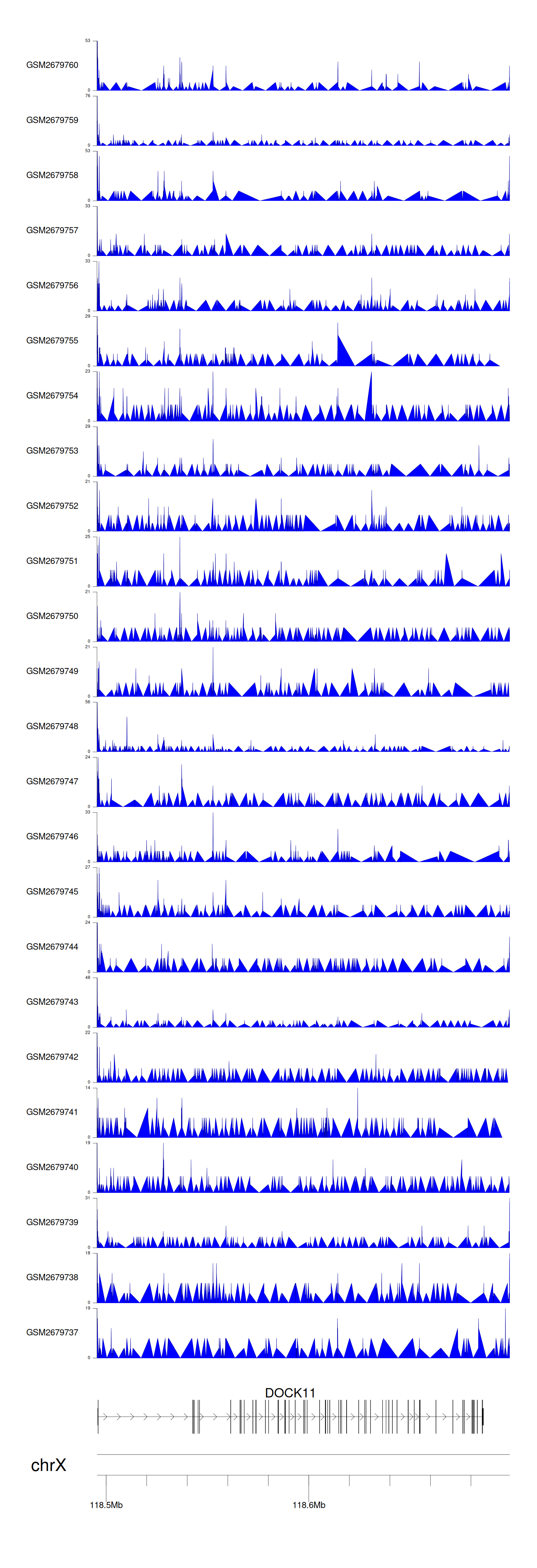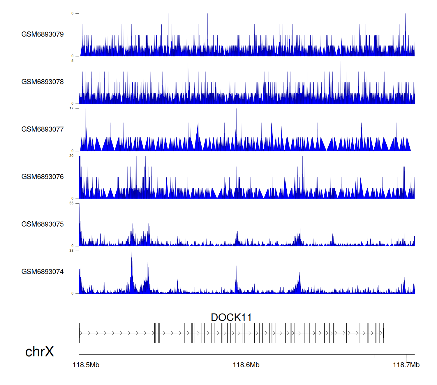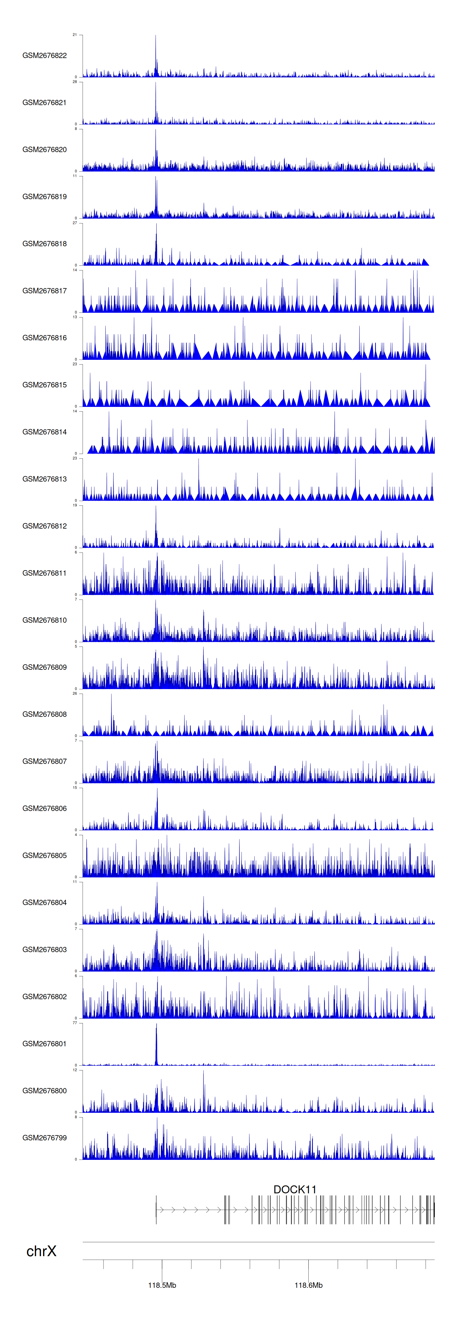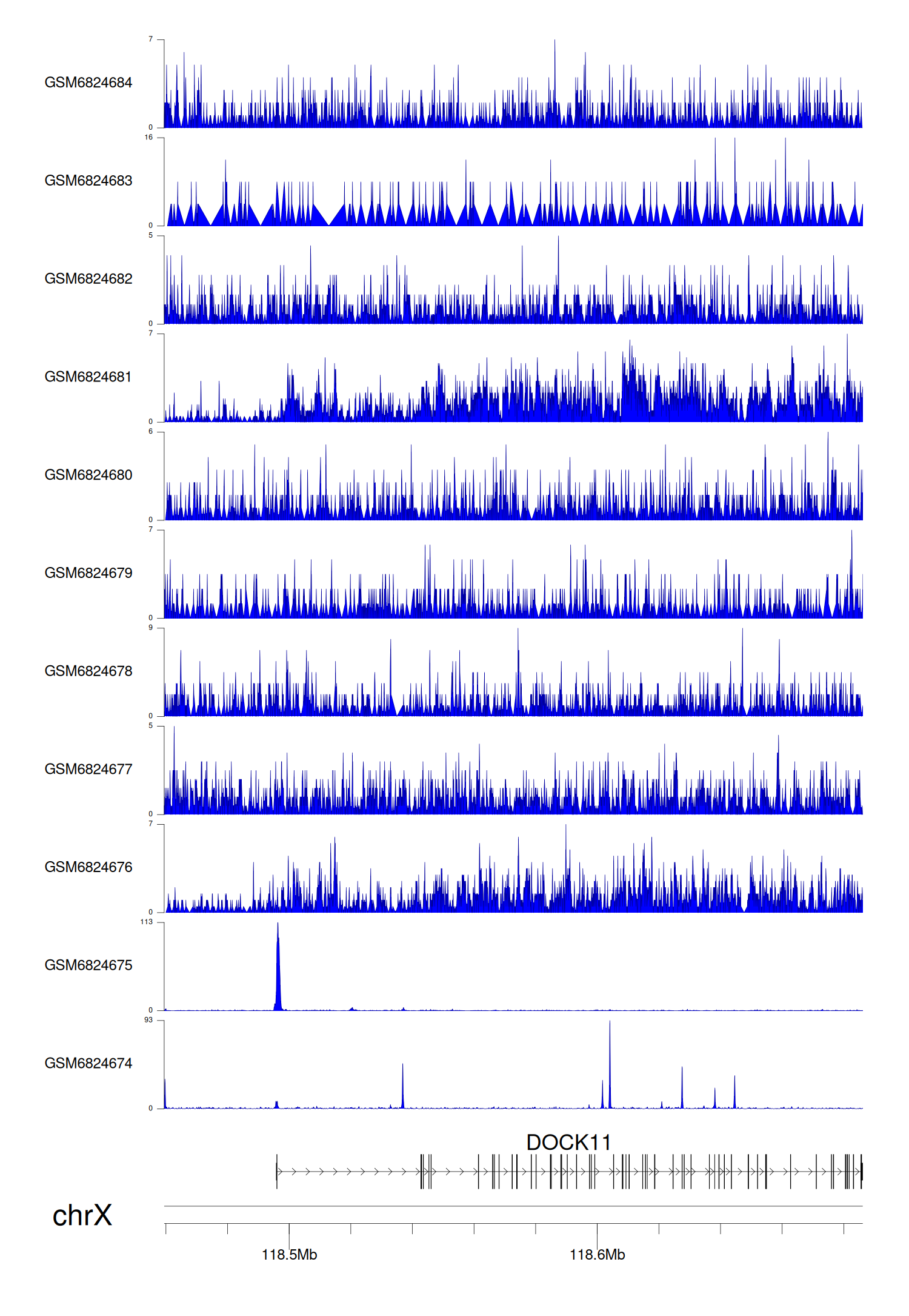 > Dataset: GSE211651 - DOCK11 peak across samples