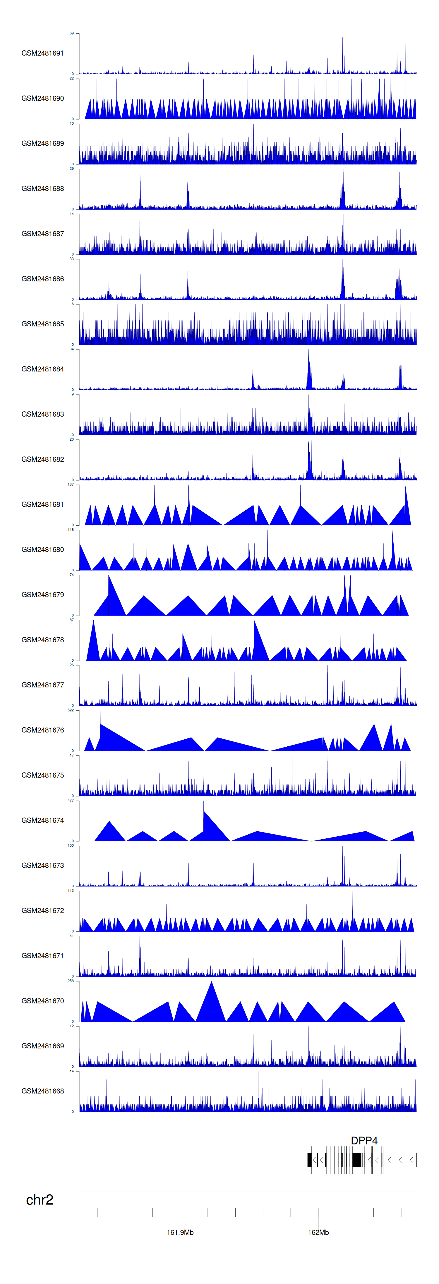 The DPP4 gene encodes dipeptidyl peptidase 4, which is identical to adenosine deaminase complexing protein-2, and to the T-cell activation antigen CD26. It is an intrinsic type II transmembrane glycoprotein and a serine exopeptidase that cleaves X-proline dipeptides from the N-terminus of polypeptides. Dipeptidyl peptidase 4 is highly involved in glucose and insulin metabolism, as well as in immune regulation. This protein was shown to be a functional receptor for Middle East respiratory syndrome coronavirus (MERS-CoV), and protein modeling suggests that it may play a similar role with SARS-CoV-2, the virus responsible for COVID-19. [provided by RefSeq, Apr 2020] |