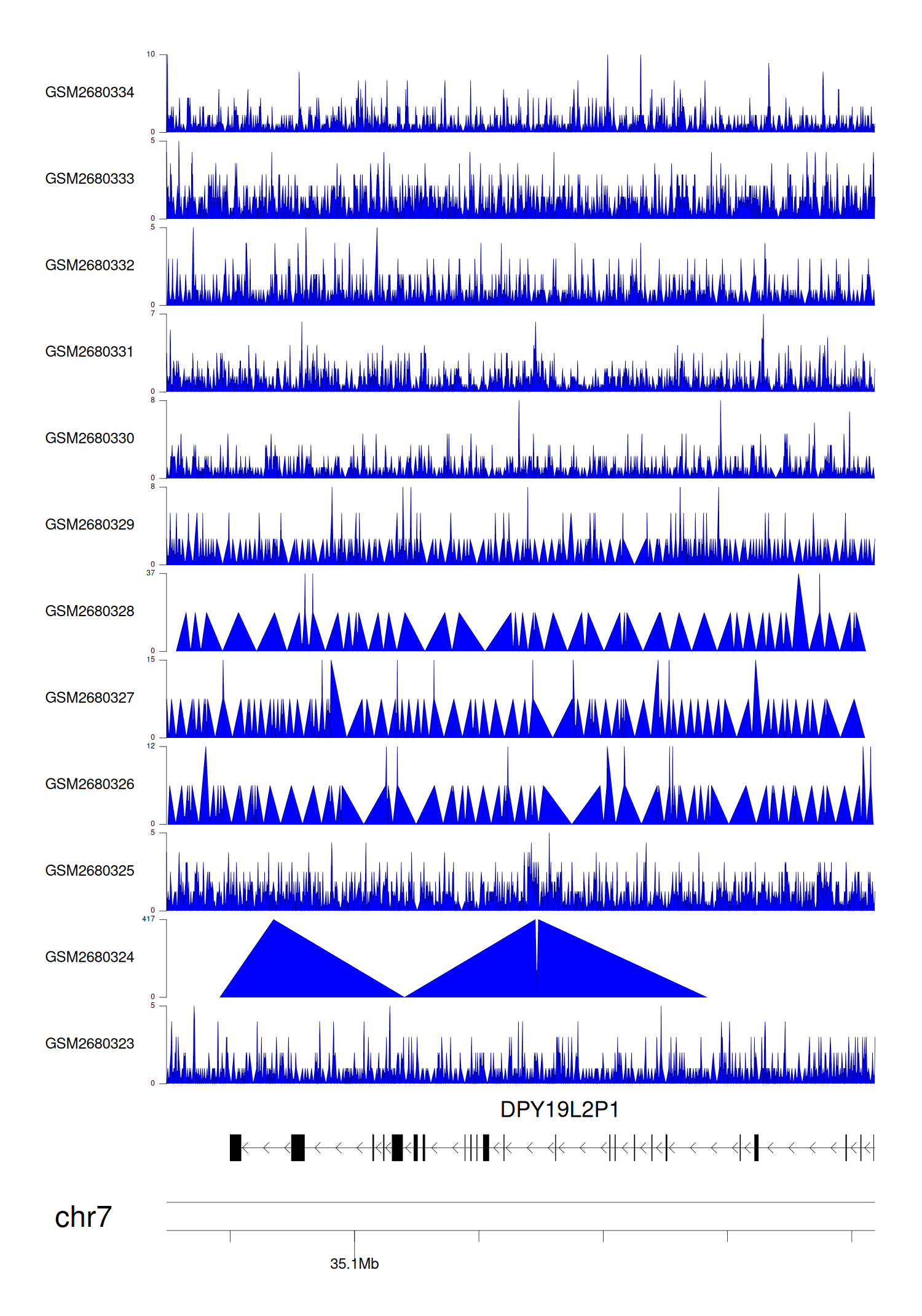 > Dataset: GSE100400 - DPY19L2P1 peak across samples