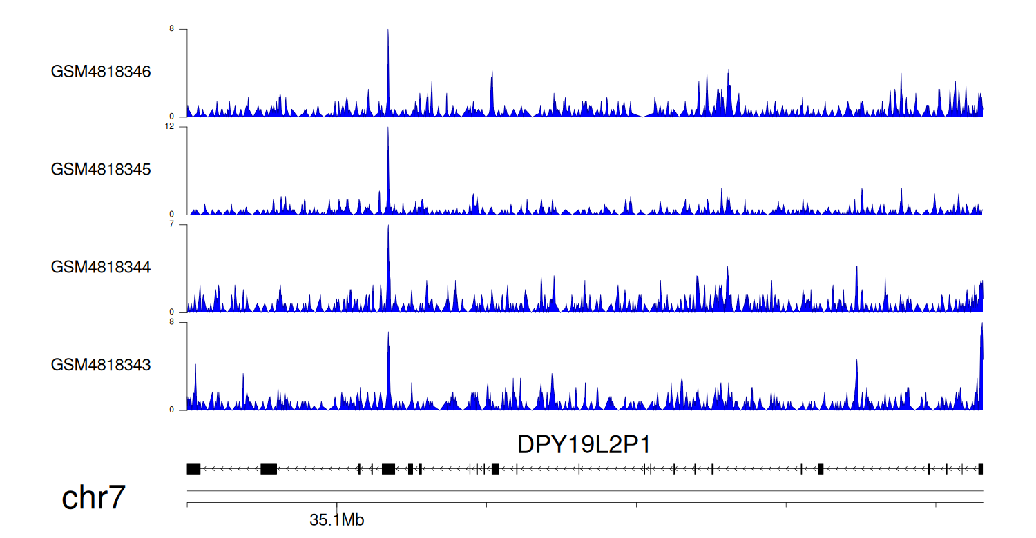 > Dataset: GSE131257 - DPY19L2P1 peak across samples
