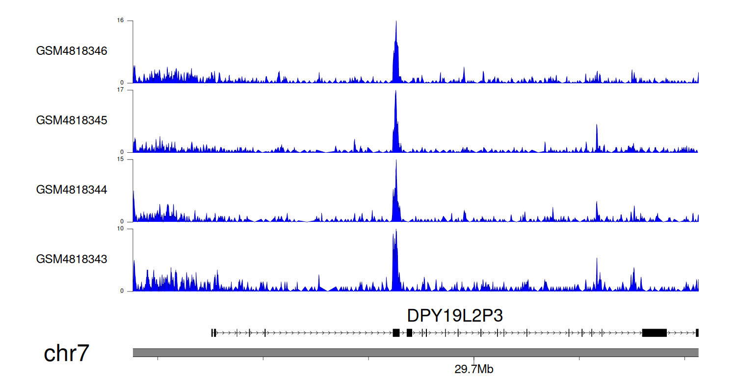 > Dataset: GSE270130 - DPY19L2P3 peak across samples