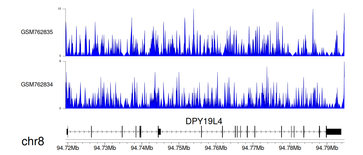 > Dataset: GSE30738 - DPY19L4 peak across samples