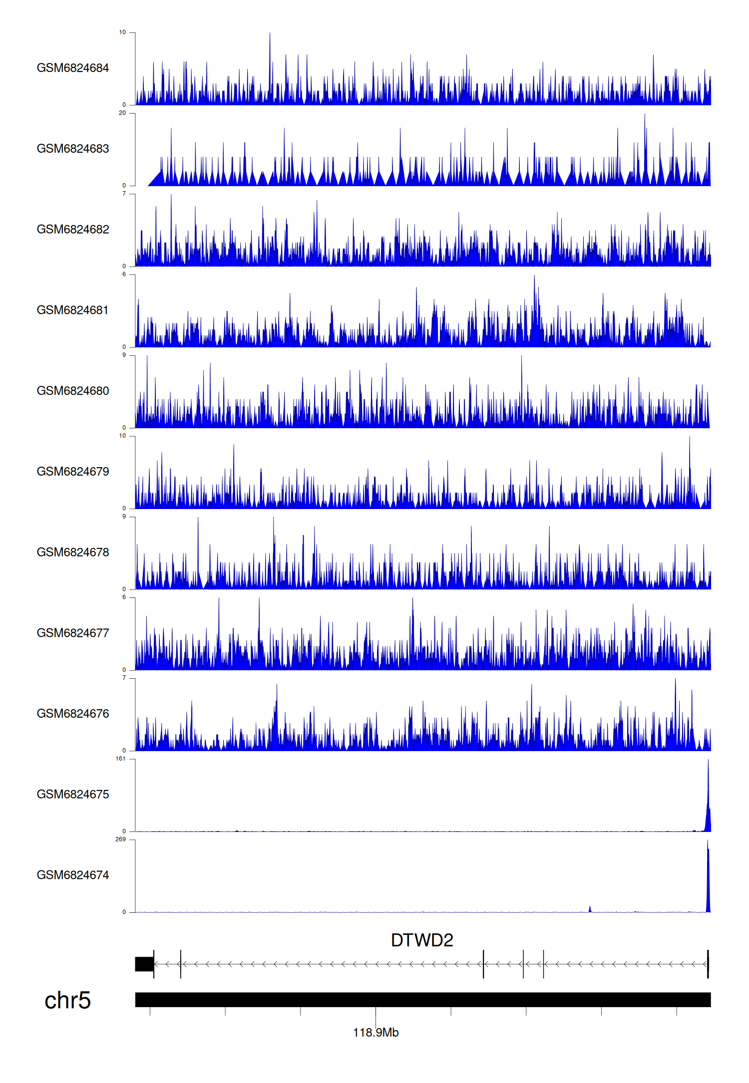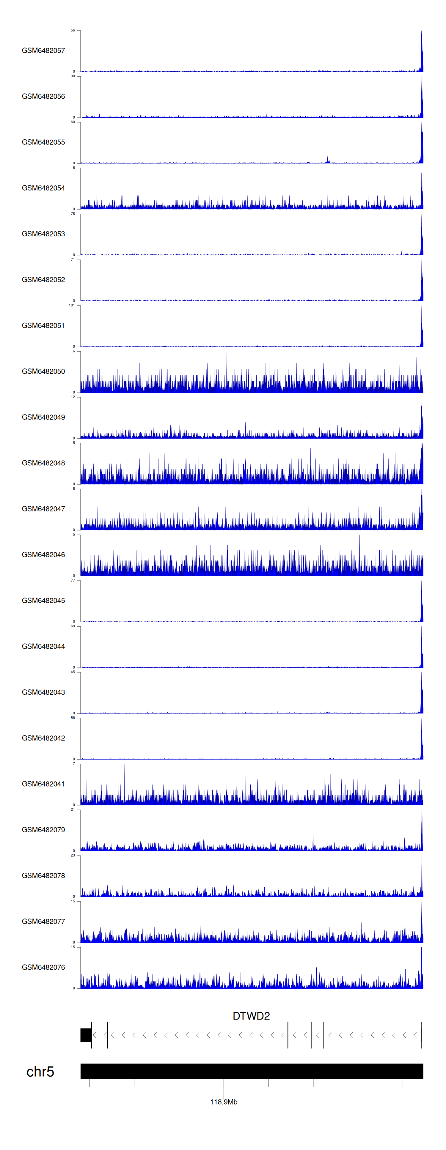 > Dataset: GSE165705 - DTWD2 peak across samples